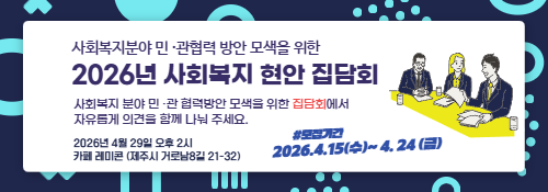 - 제주지역 사회복지 민·관 협력 방안 모색을 위한 설문조사 참여 협조 요청 2026-04-14