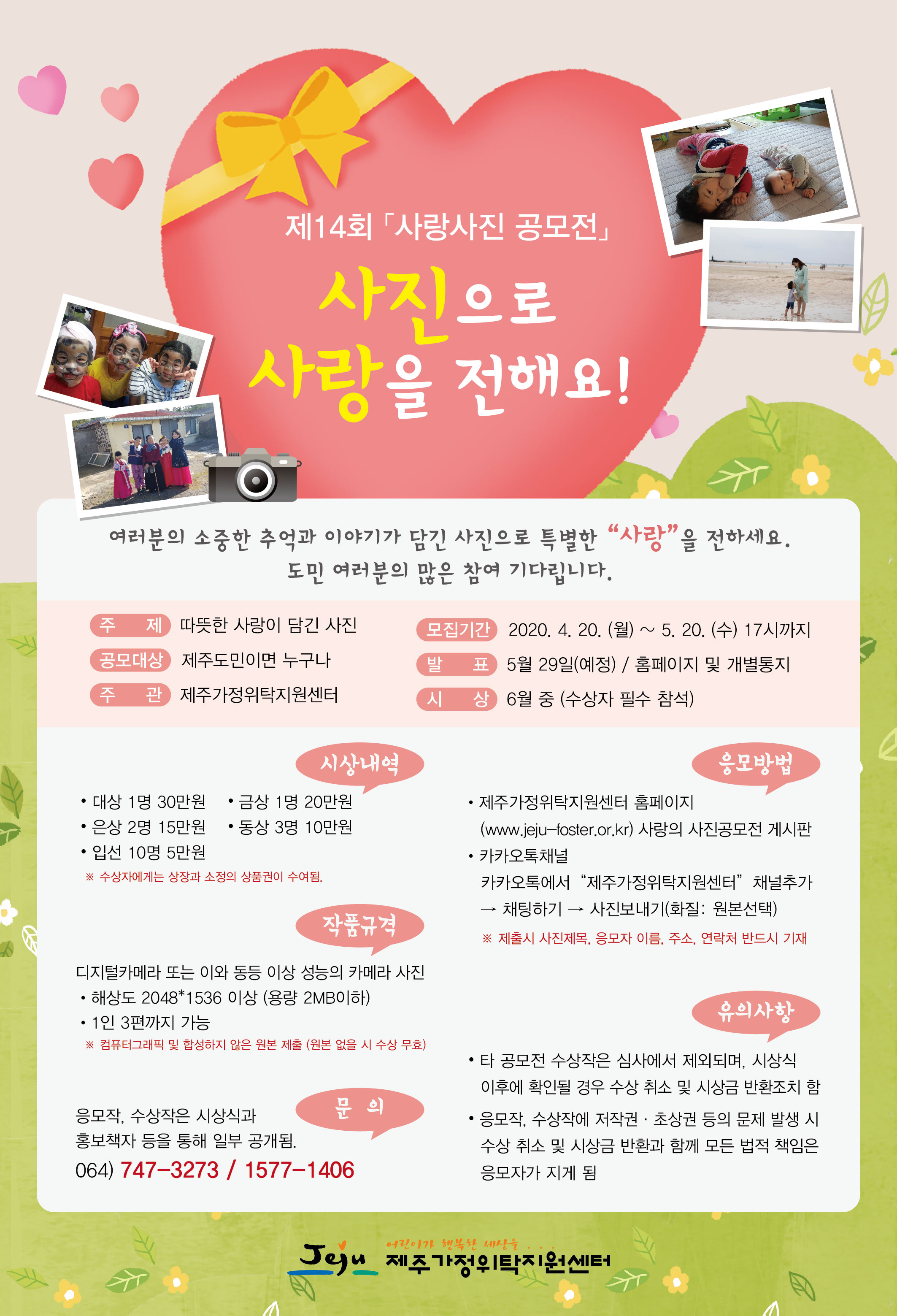 제주가정위탁지원센터에서 제 14회 사랑사진 공모전을 진행합니다!!