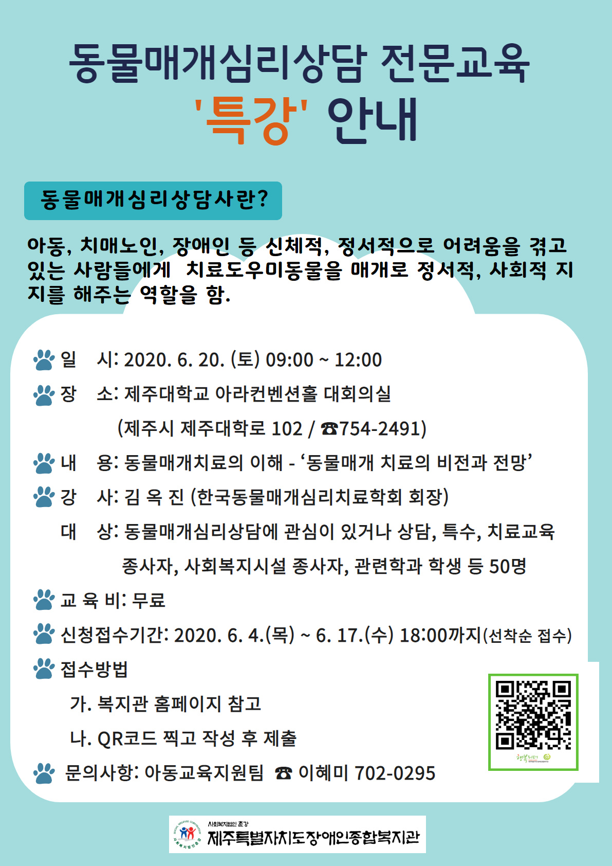 [홍보] 동물매개심리상담 전문교육 '특강' 안내