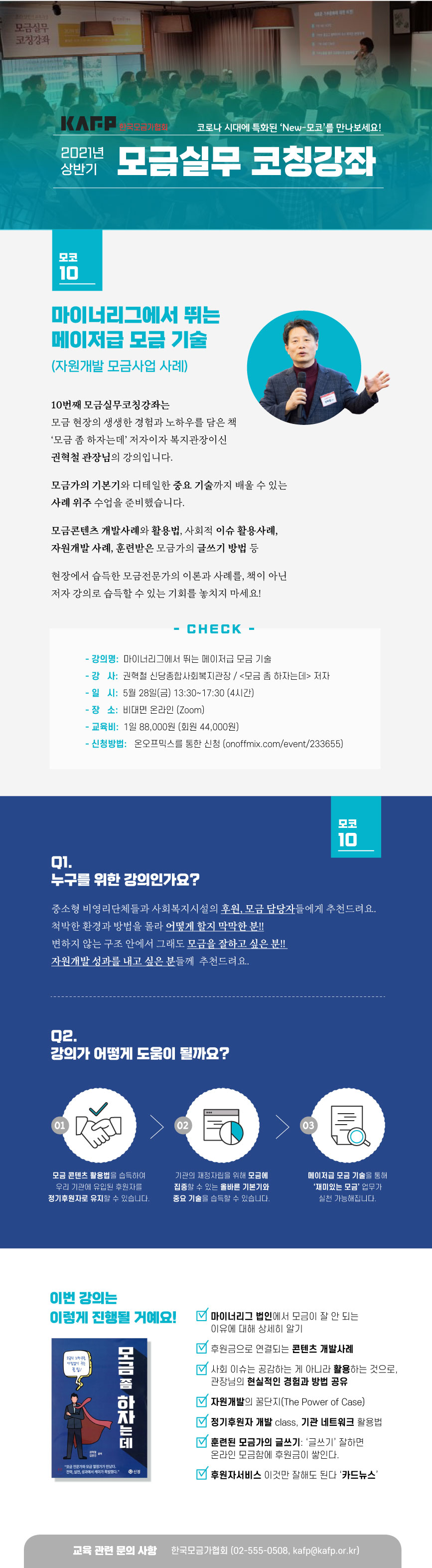 한국모금가협회에서는 '마이너리그에서 뛰는 메이저급 모금 기술'이란 제목으로 모금실무 코칭강좌를 실시합니다.