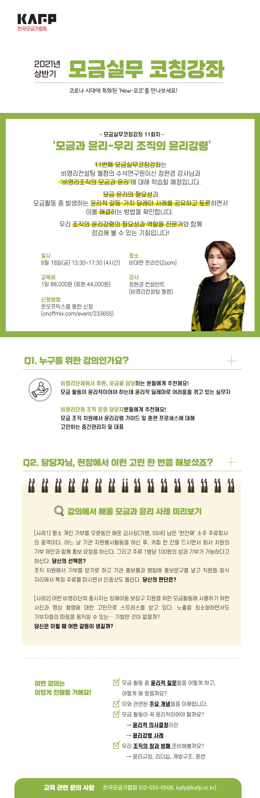 *교육명: 2021 상반기 모금실무코칭강좌 11회차 '모금과 윤리 - 우리조직의 윤리강령'