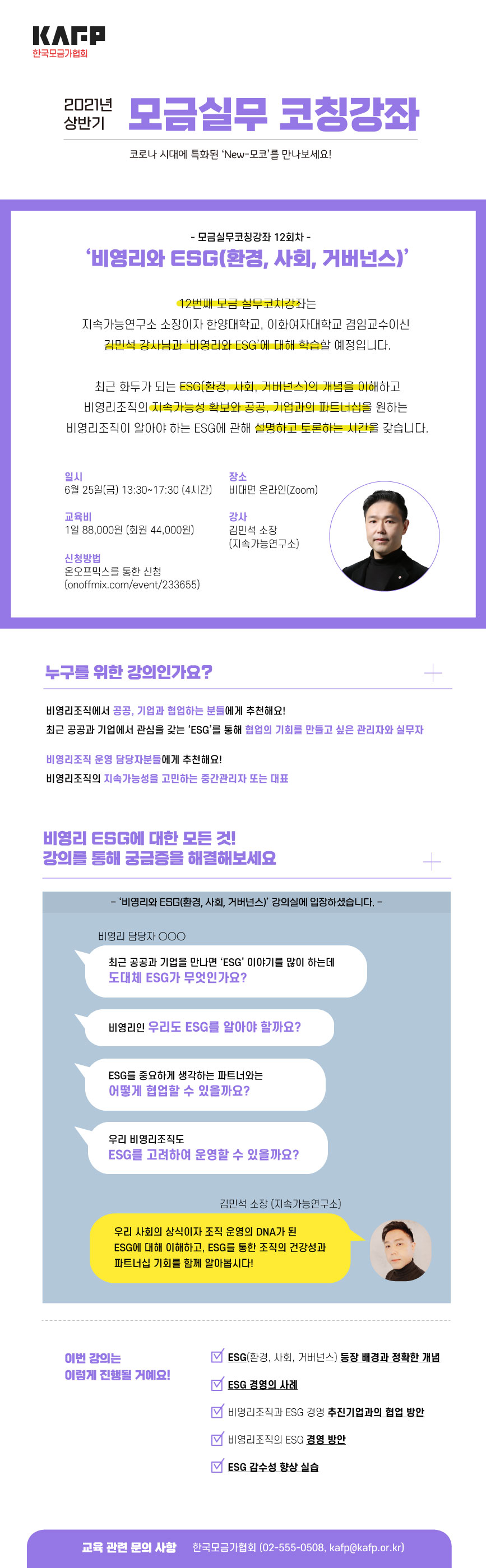 [한국모금가협회] 모금실무코칭강좌 12회차 '비영리와 ESG의 관계' 강의 안내