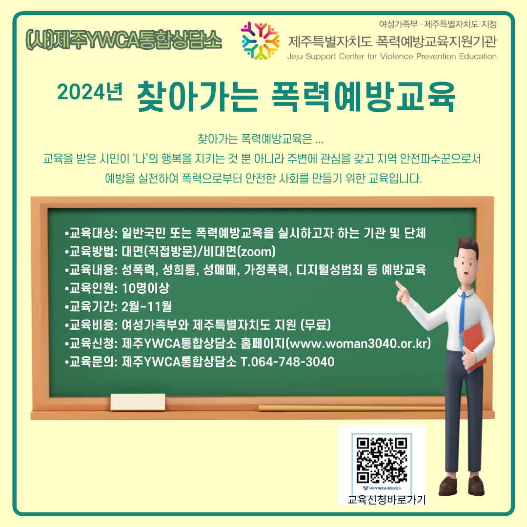 (사)제주YWCA통합상담소, 2024년 찾아가는 폭력예방교육 안내