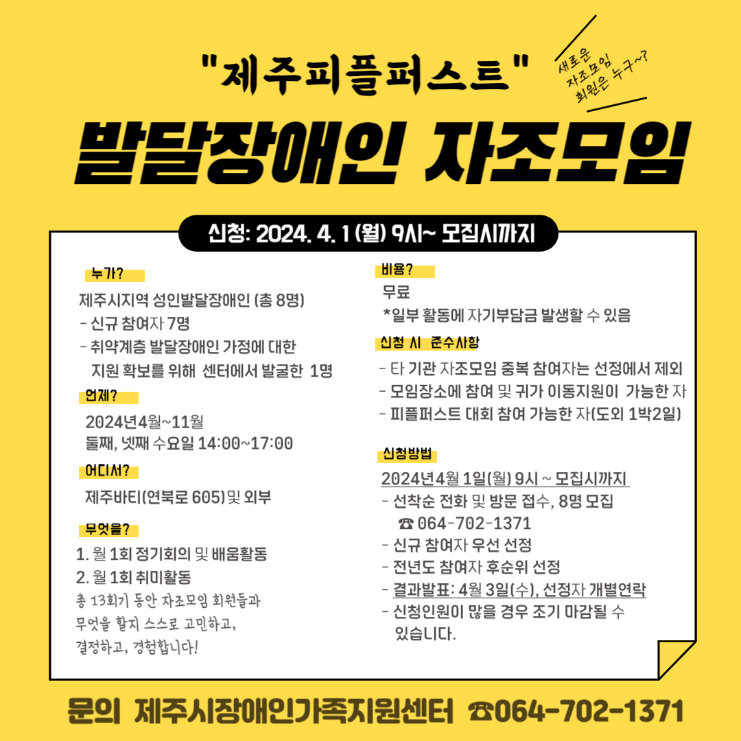 제주시장애인가족지원센터 2024년 발달장애인자조모임 참여자 모집