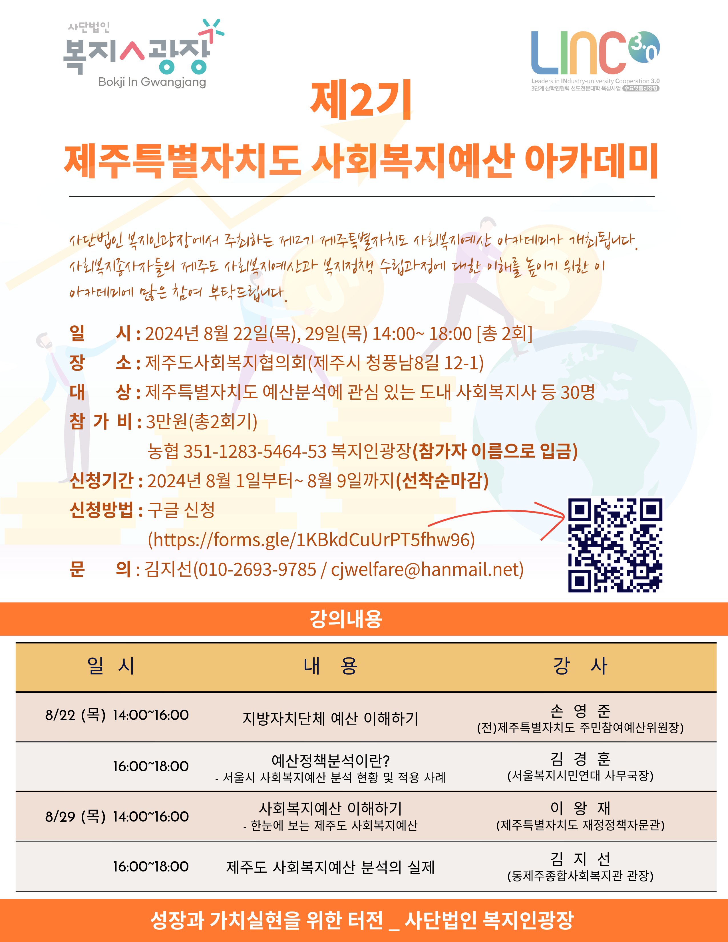 그렇다면 이번 기회를 놓치지 마세요! 사단법인 복지인광장에서 주최하는 제2기 제주특별자치도 사회복지예산 아카데미가 여러분을 기다립니다.