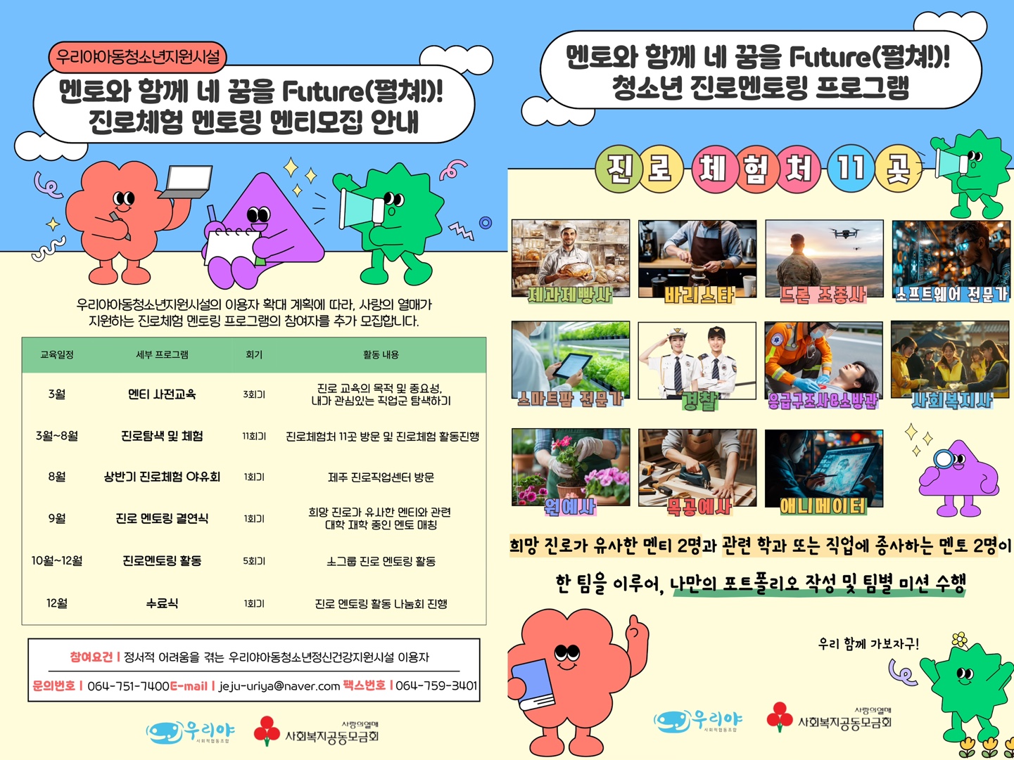 우리야아동청소년지원시설에서는 이용자 확대 계획에 따라 사랑의 열매가 지원하는 진로체험 멘토링 프로그램에 참여할 멘티를 추가 모집합니다!