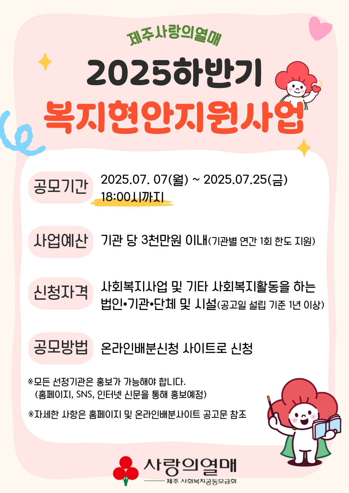 안녕하세요. 제주사랑의열매에서 2025년 하반기 복지현안지원사업을 시행하오니