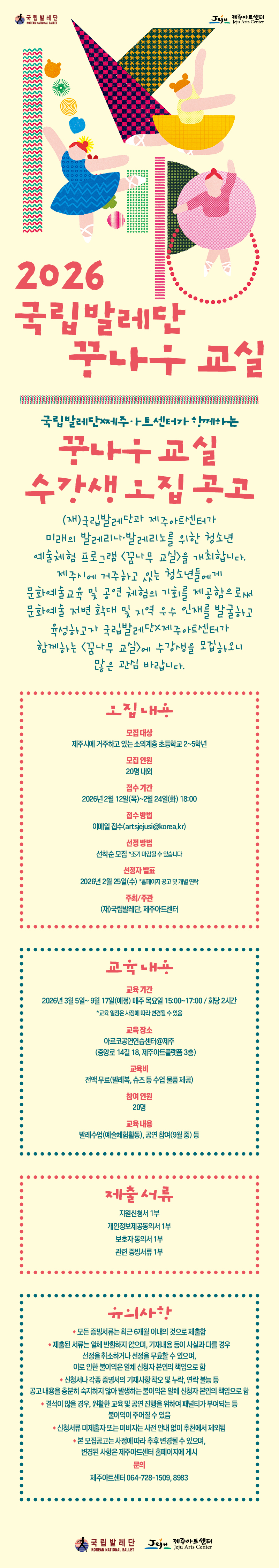 제주아트센터 X 국립발레단 [꿈나무 교실] 수강생 모집 안내