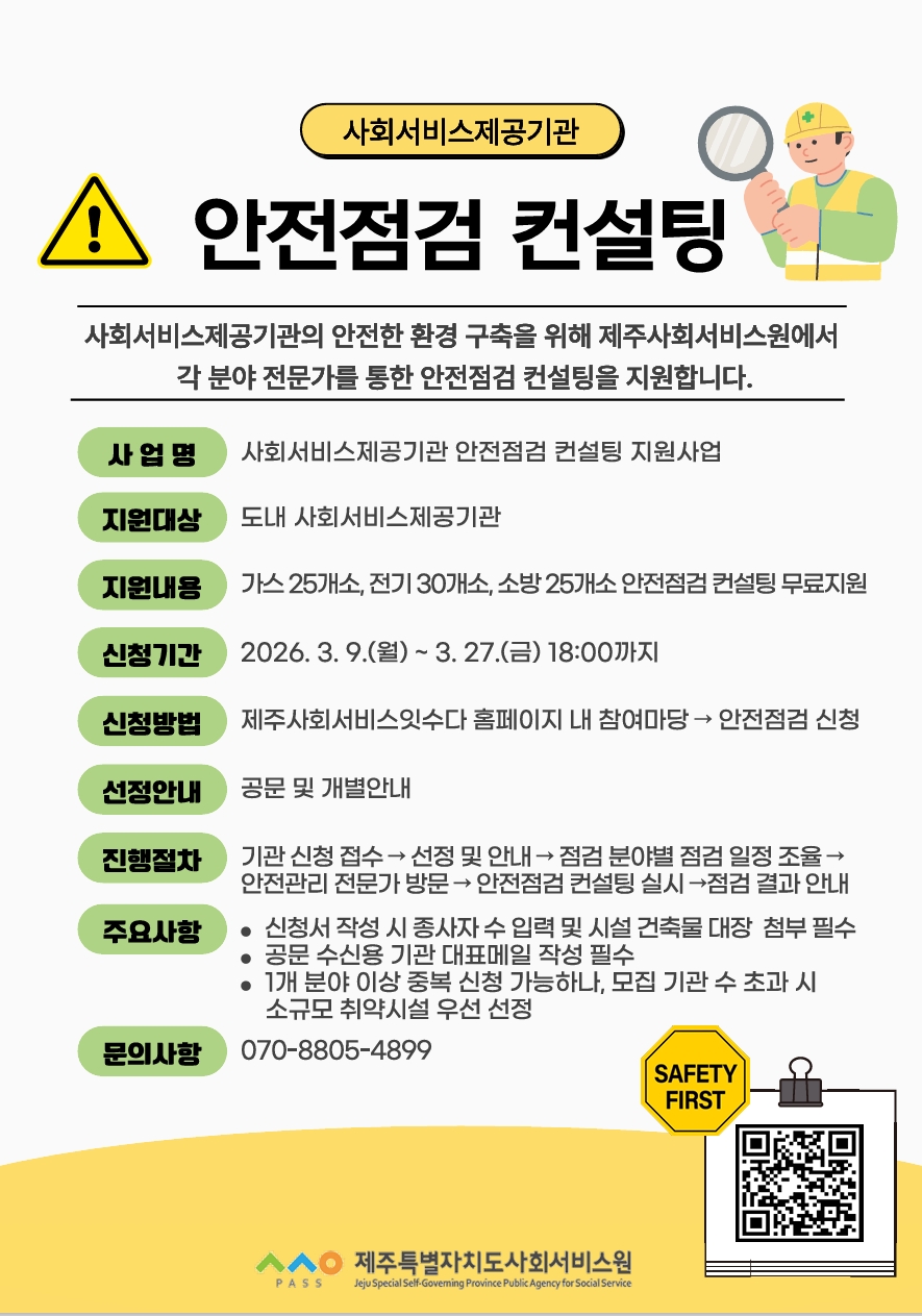 사회서비스제공기관 안전점검 컨설팅 지원사업 대상기관 모집