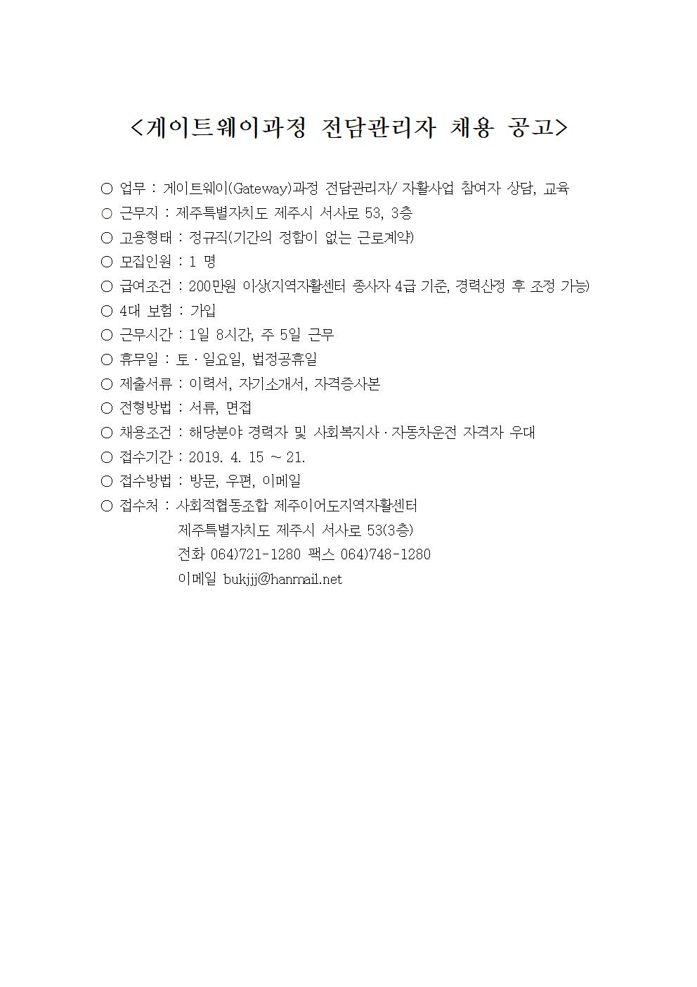 게이트웨이과정 전담관리자 채용 공고