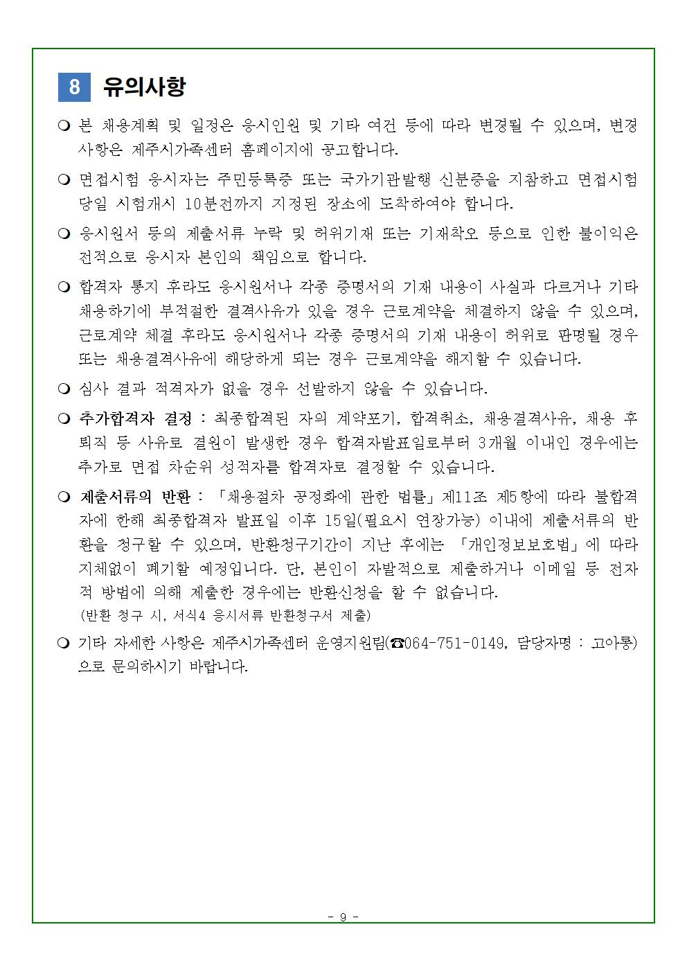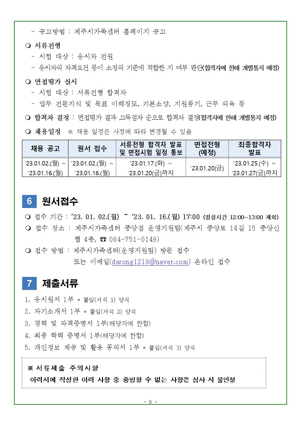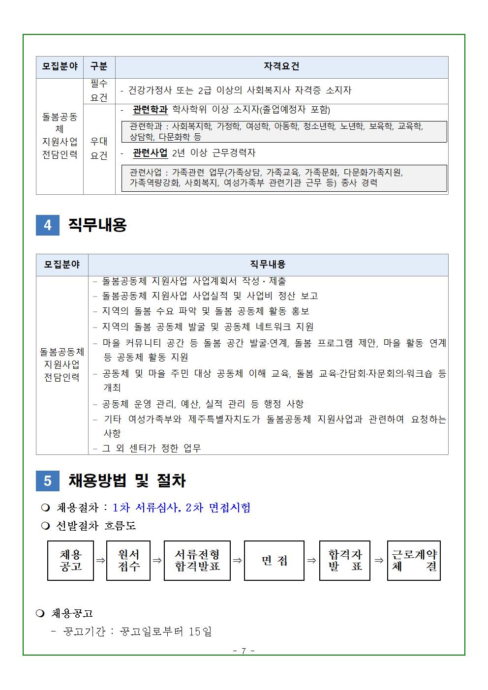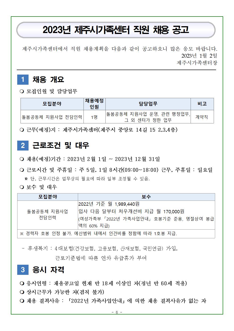 제주시가족센터 직원 채용 공고(돌봄공동체 지원사업 전담인력)