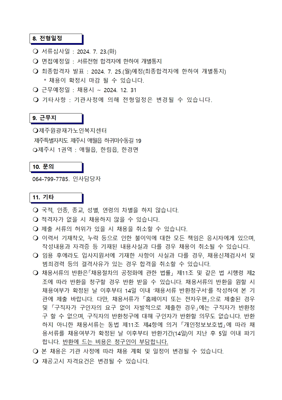 [긴급]2024년 제주원광재가노인복지센터 노인맞춤돌봄서비스 수행인력 채용공고