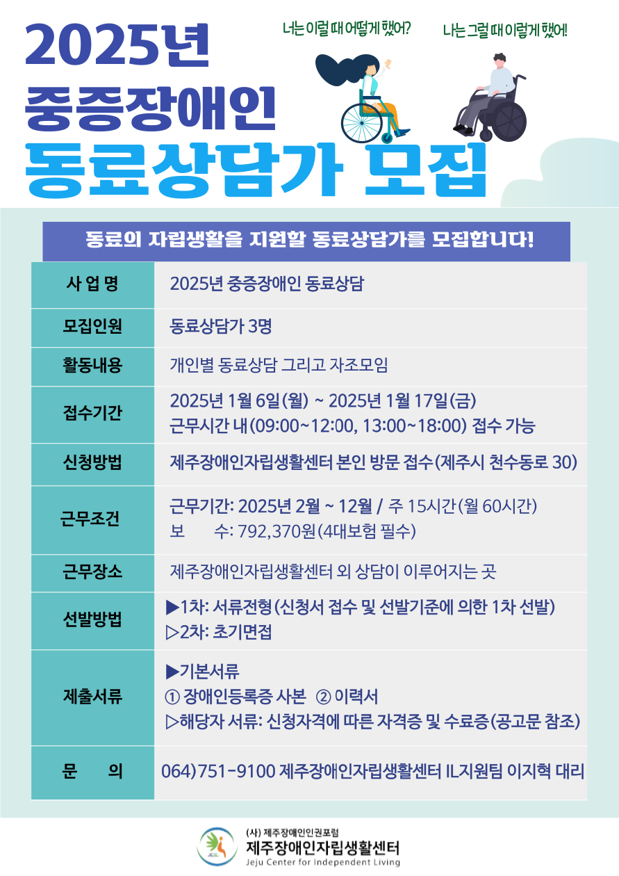 - 주 소: 제주시 천수동로 30, 제주장애인자립생활센터