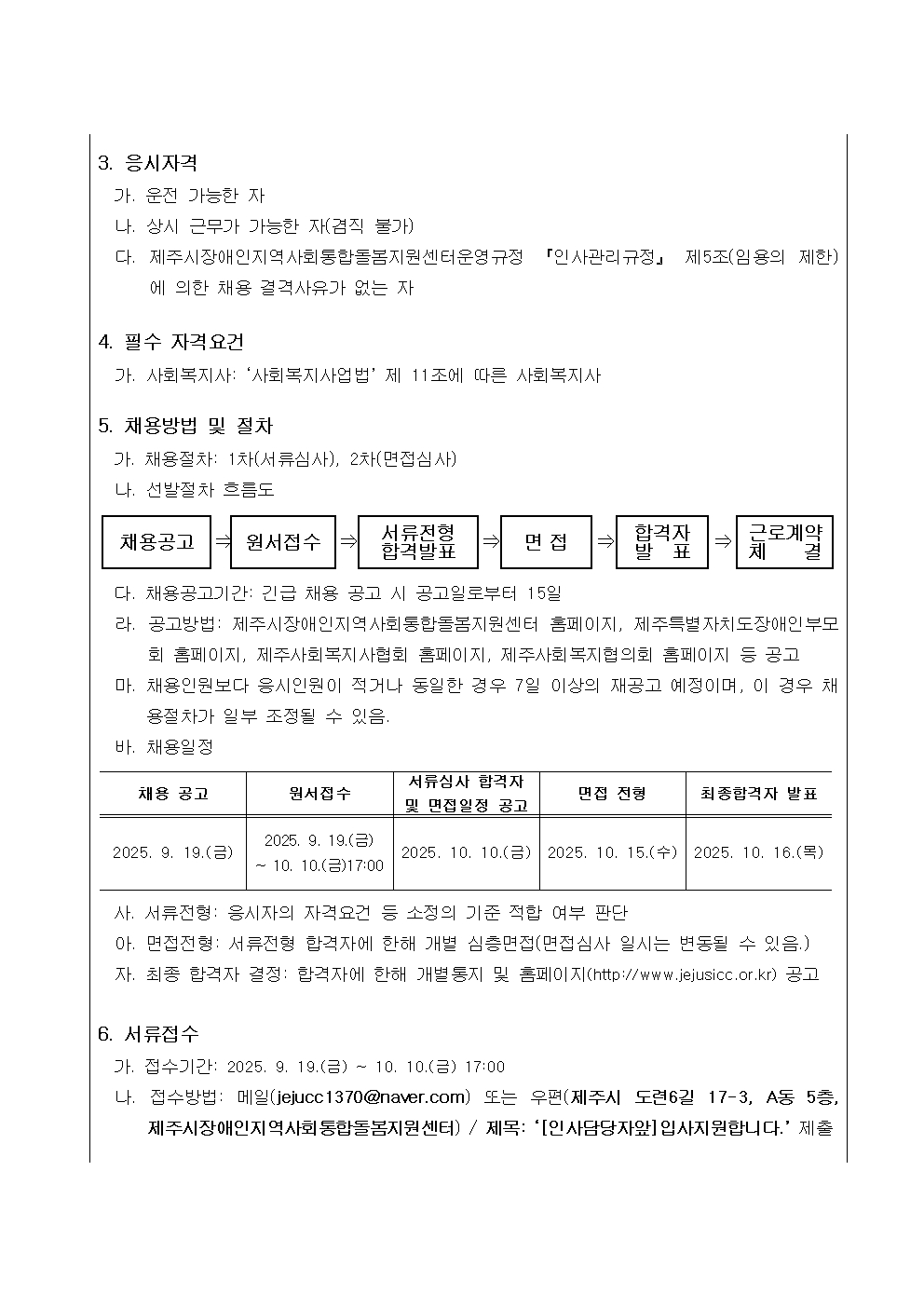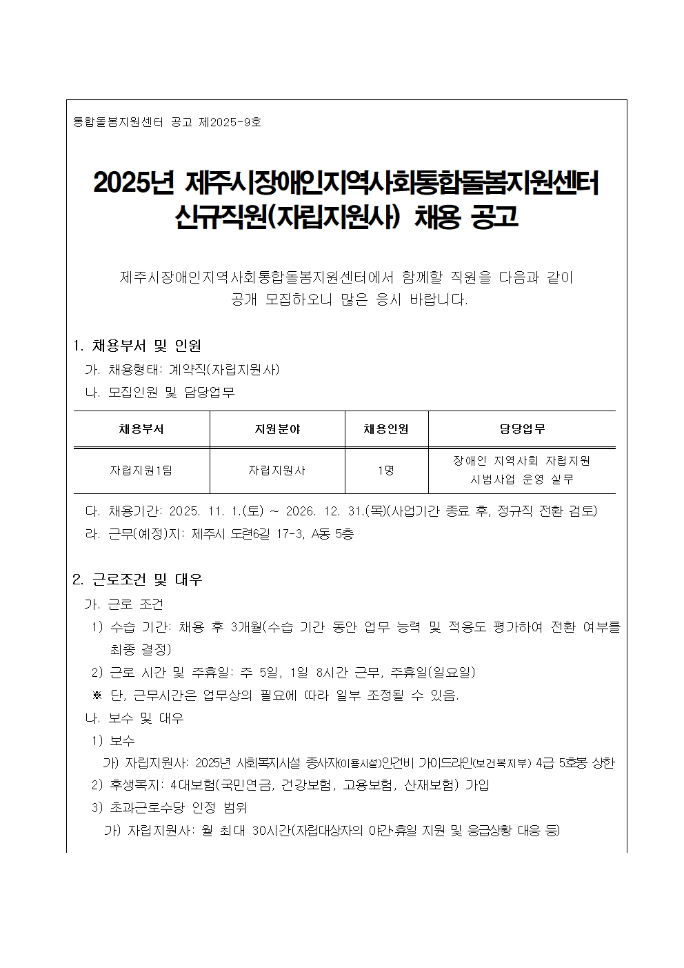 [공고] 2025년 제주시장애인지역사회통합돌봄지원센터 신규직원(자립지원사) 채용 공고.pdf