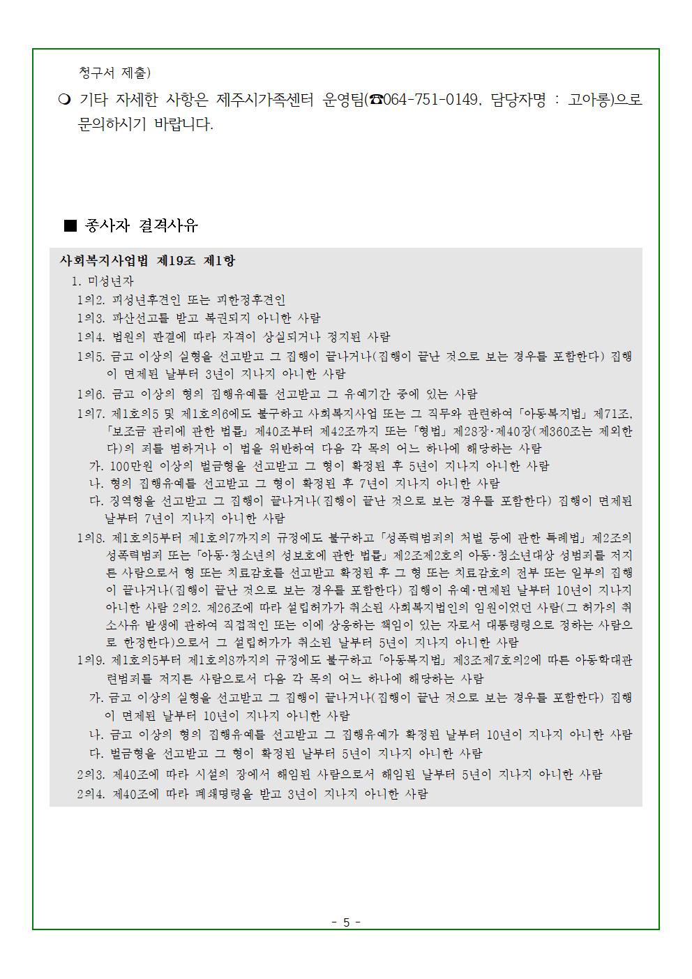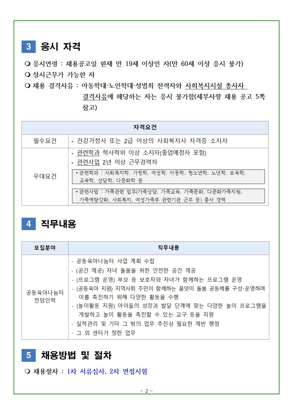 2025년 제주시가족센터 직원 채용 공고(공동육아나눔터 전담인력)