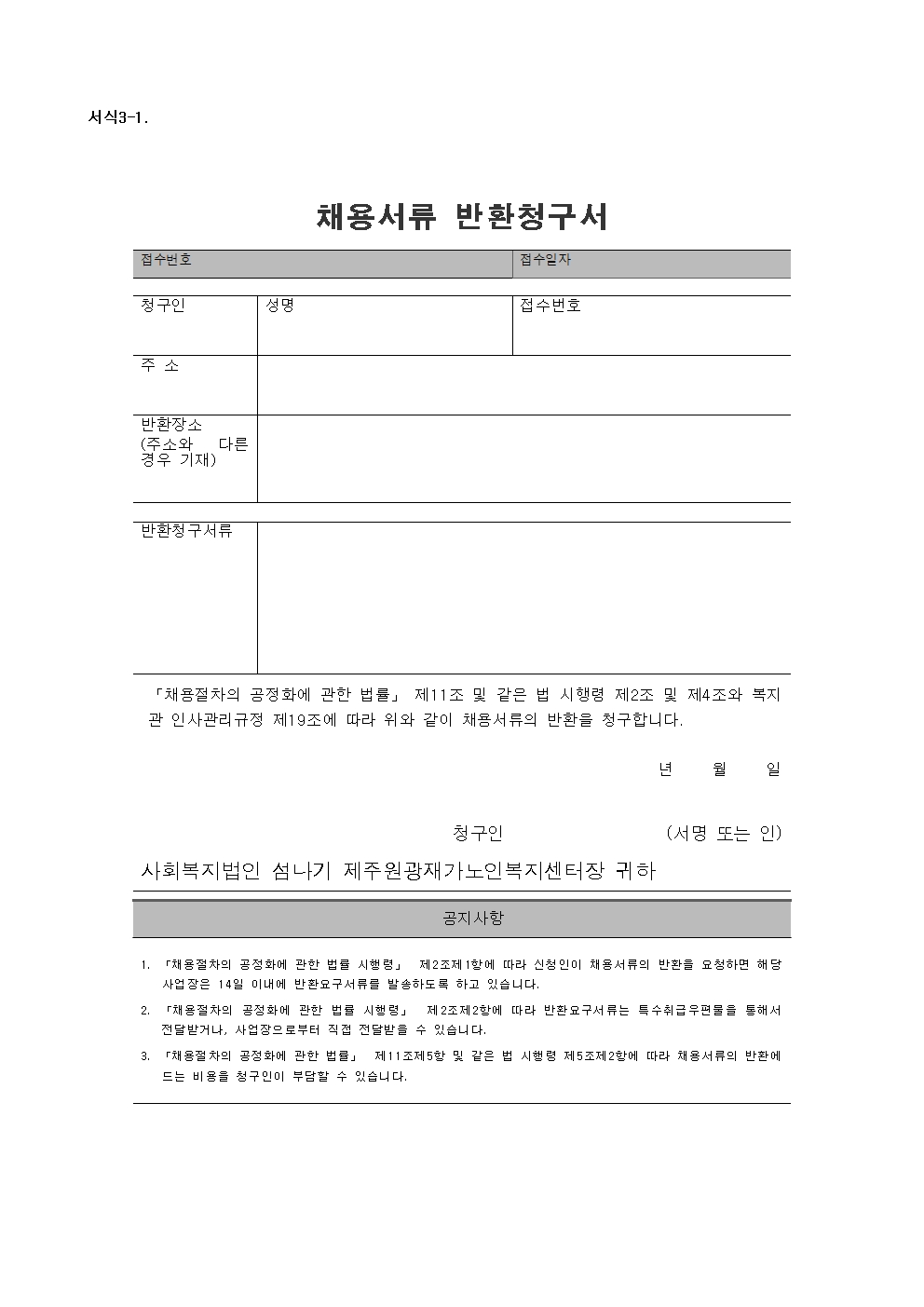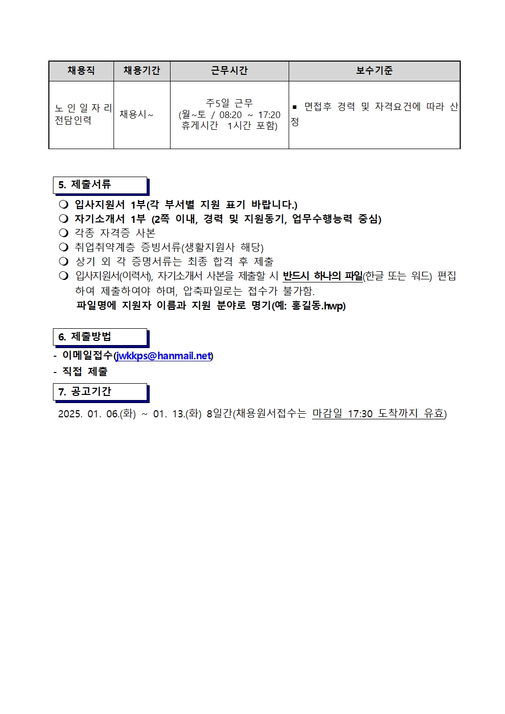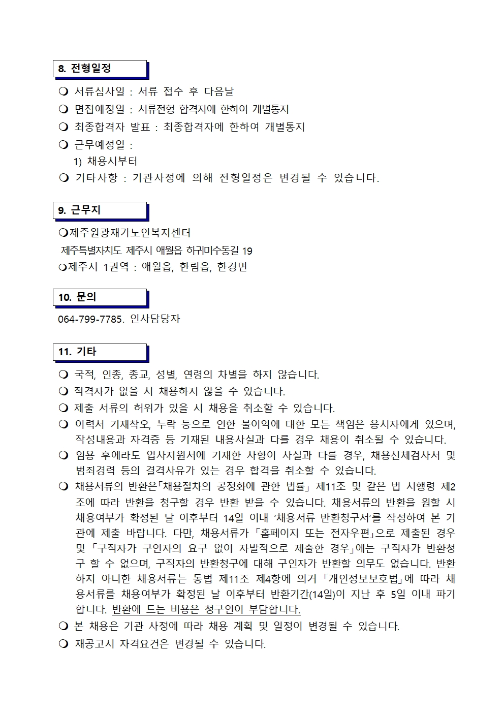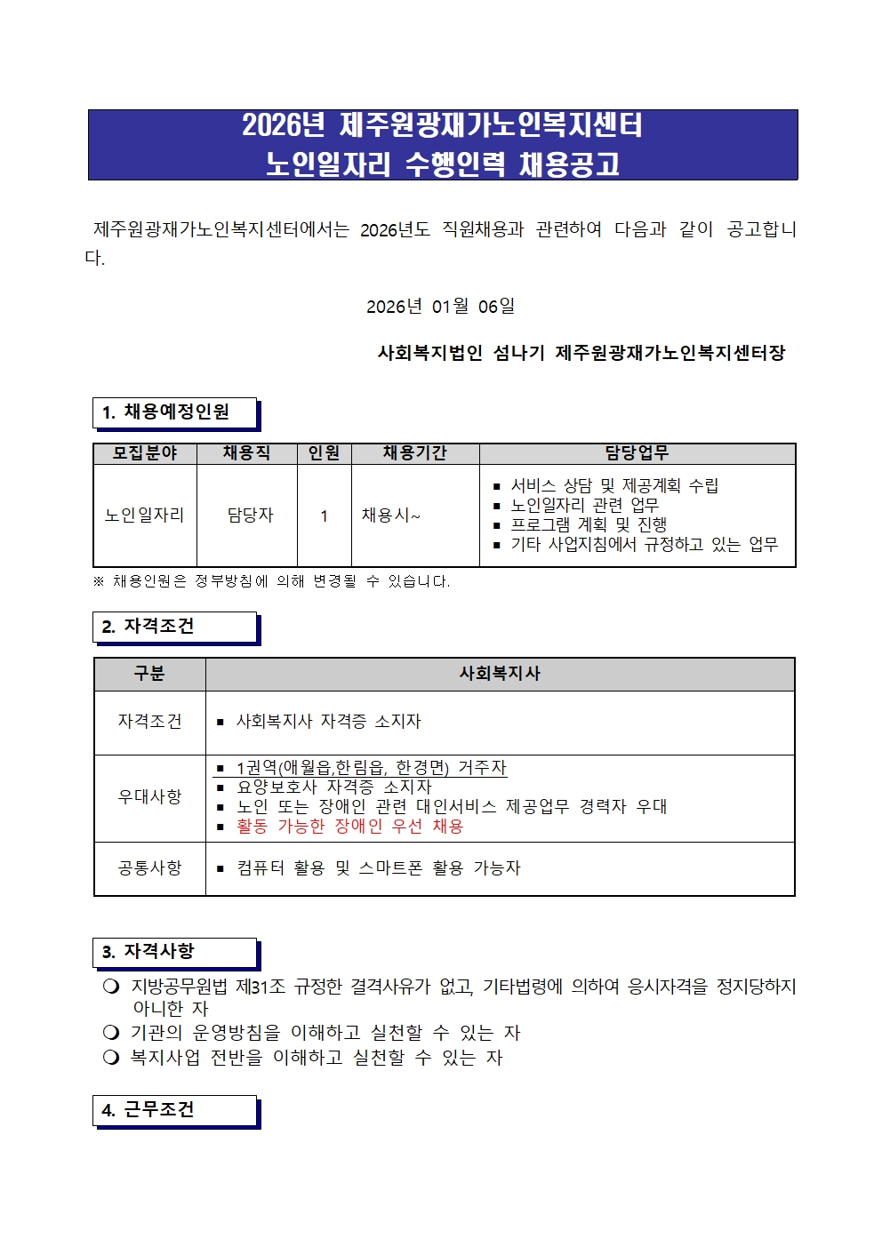 2026년 제주원광재가노인복지센터 노인일자리 수행인력 채용공고