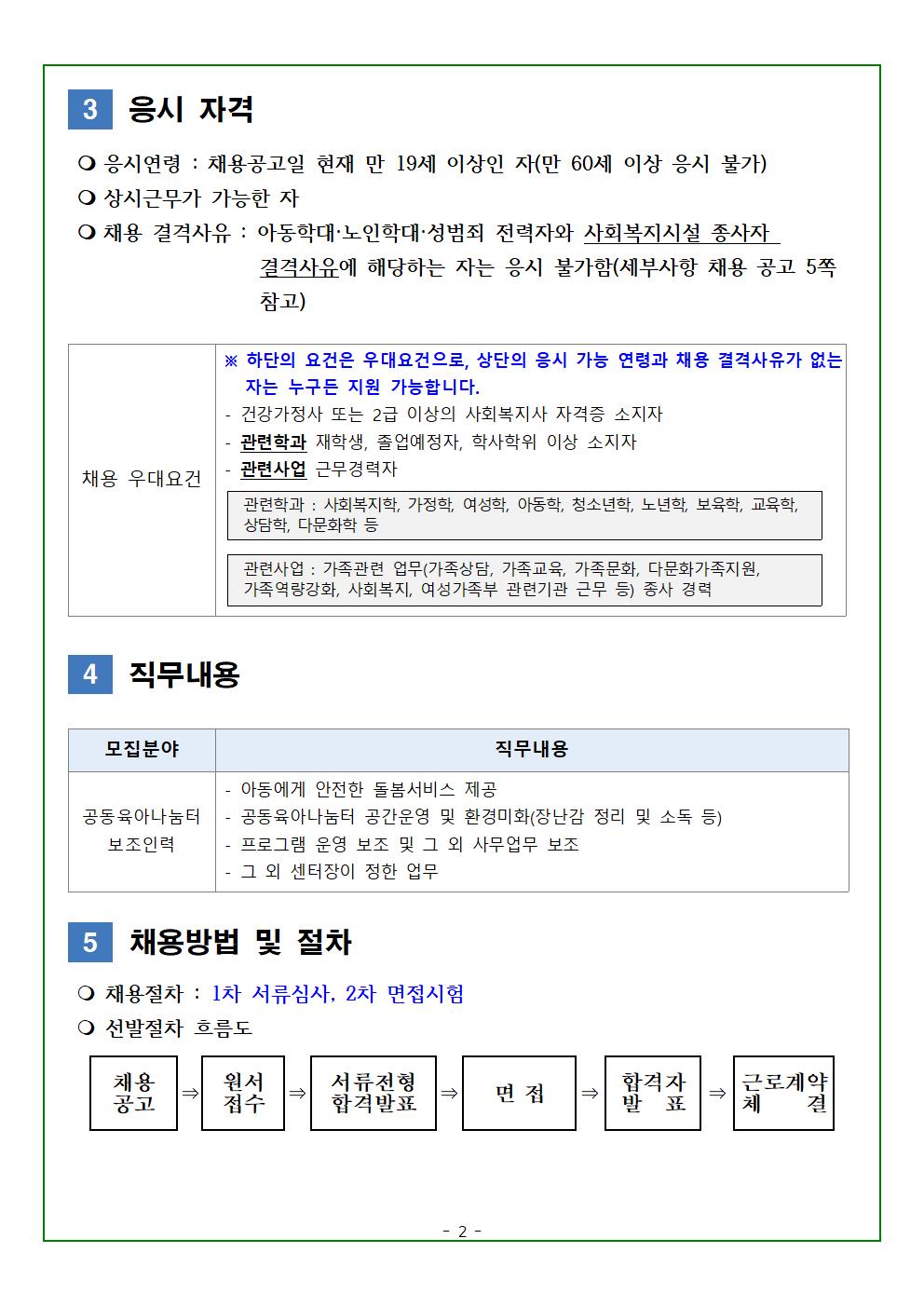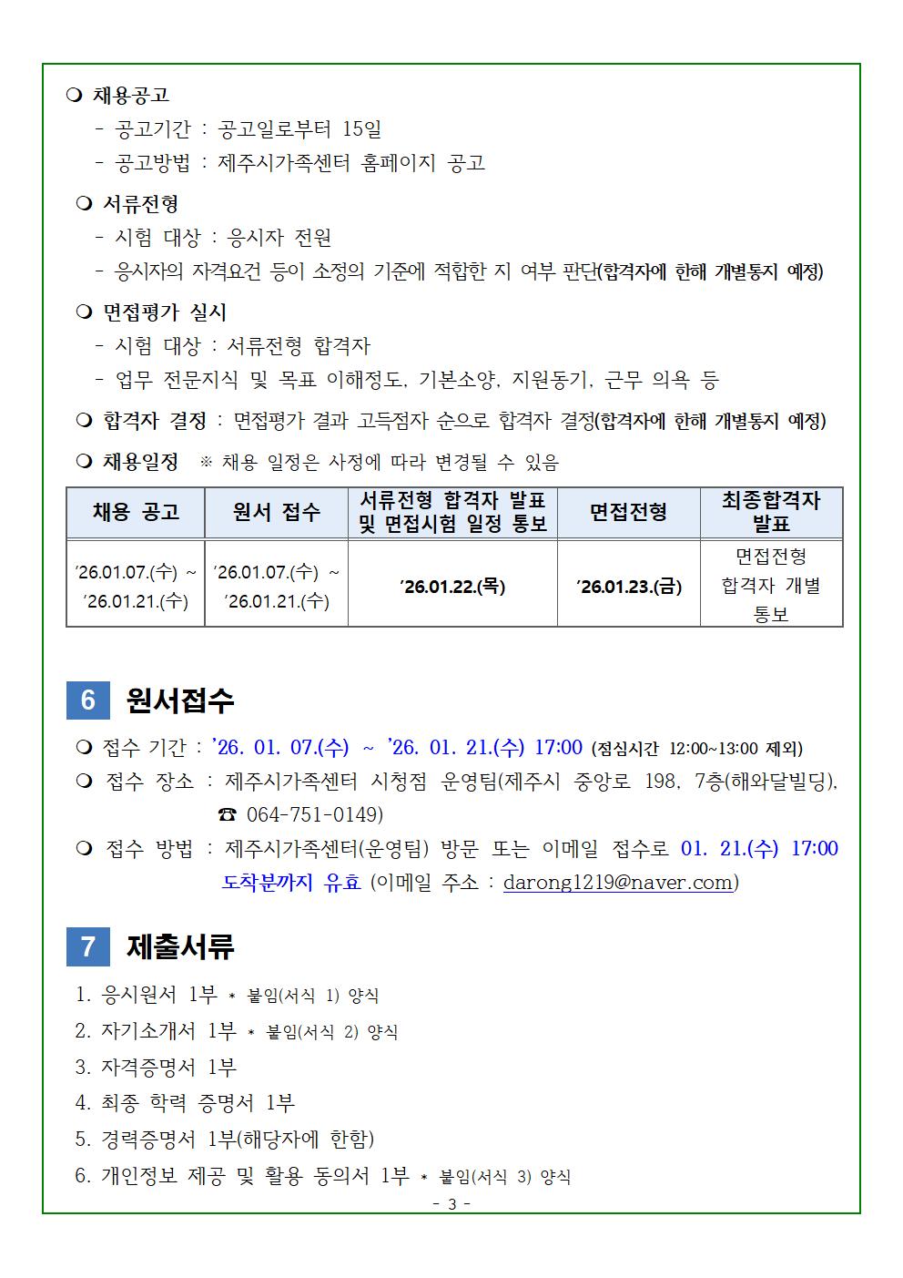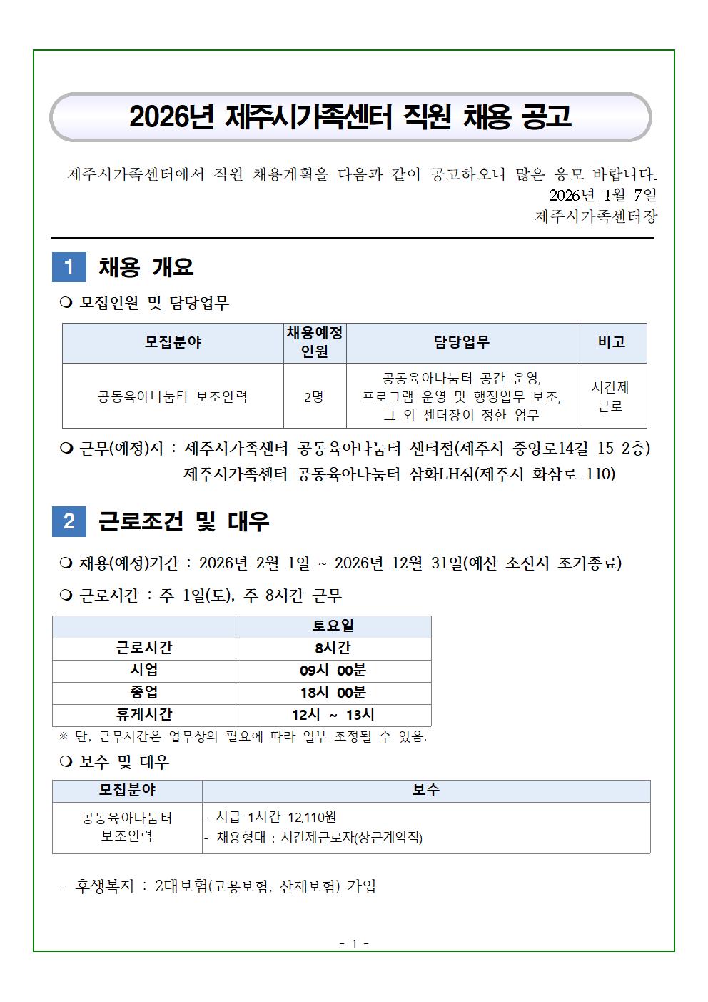 2026년 제주시가족센터 직원 채용 공고(공동육아나눔터 보조인력)