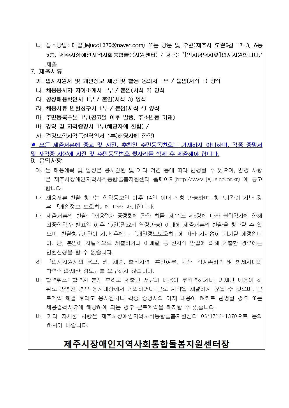 안녕하십니까, 제주시장애인지역사회통합돌봄지원센터입니다.