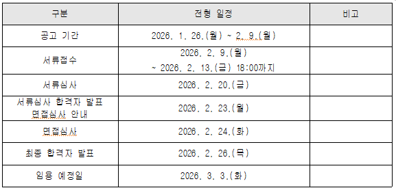 1) 면접일정 : 2026. 2. 24.(화) ※서류 합격자 개별통보