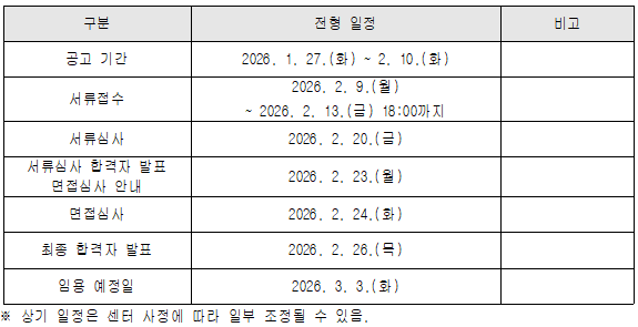1) 면접일정 : 2026. 2. 24.(화) ※서류 합격자 개별통보