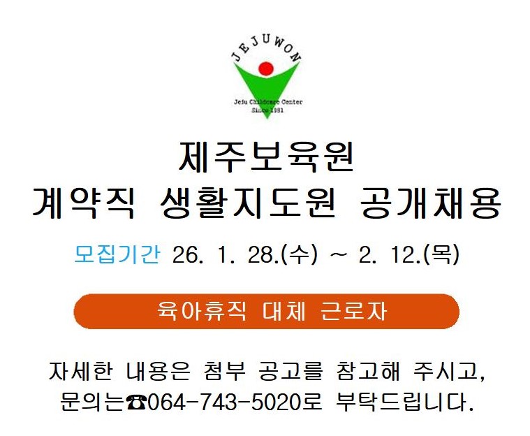 계약직 생활지도원 공개 채용 안내(육아휴직 대체 근로자)