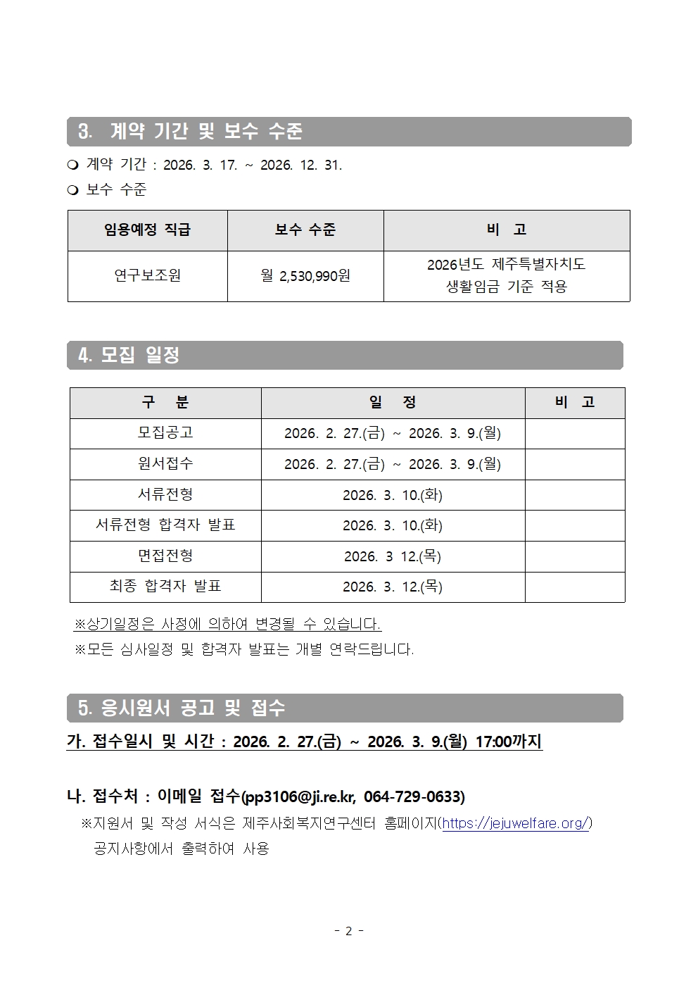 제주연구원 제주사회복지연구센터 과제위촉직(연구보조원) 직원 공개모집