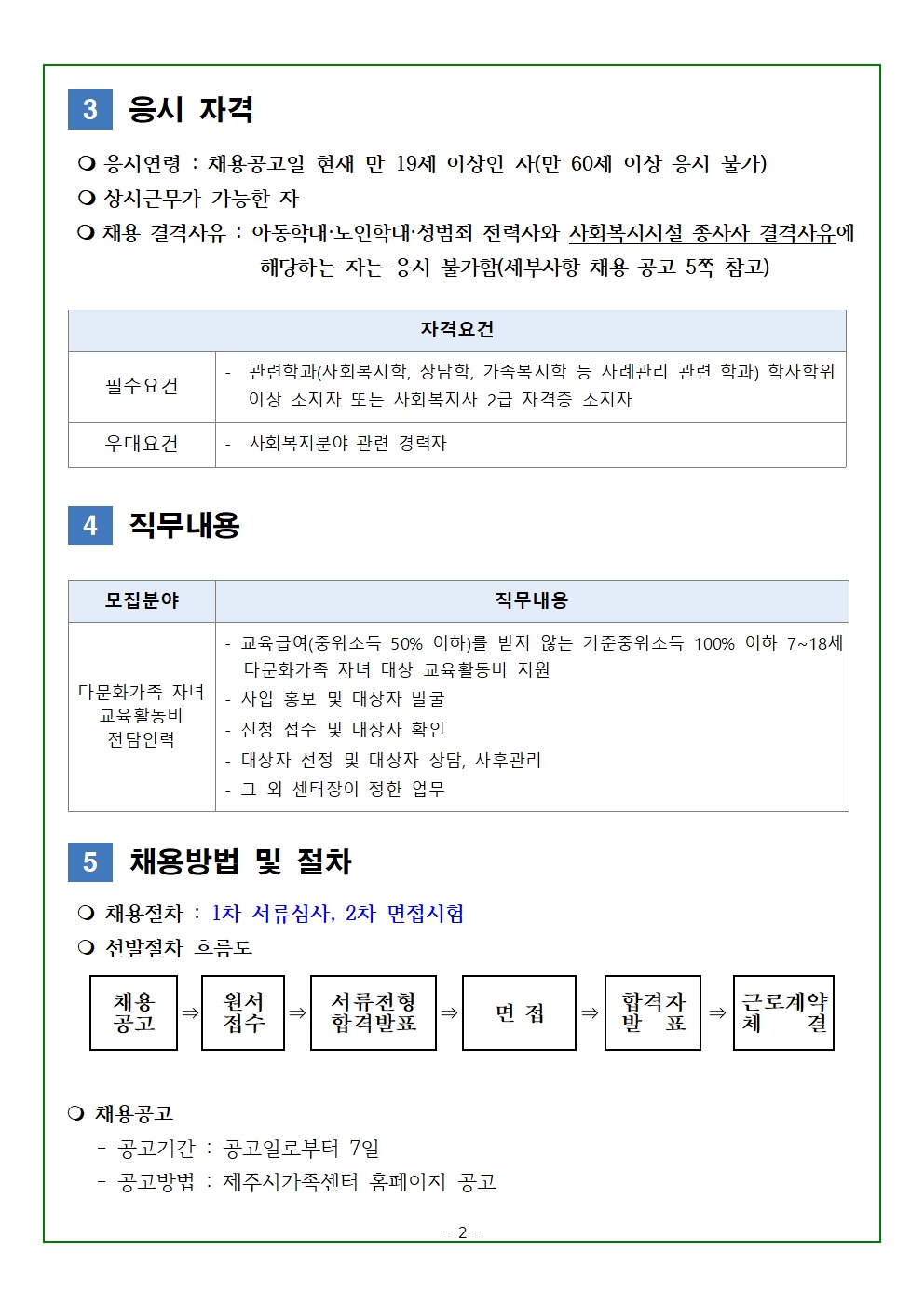 공고방법 : 제주시가족센터 홈페이지 공고