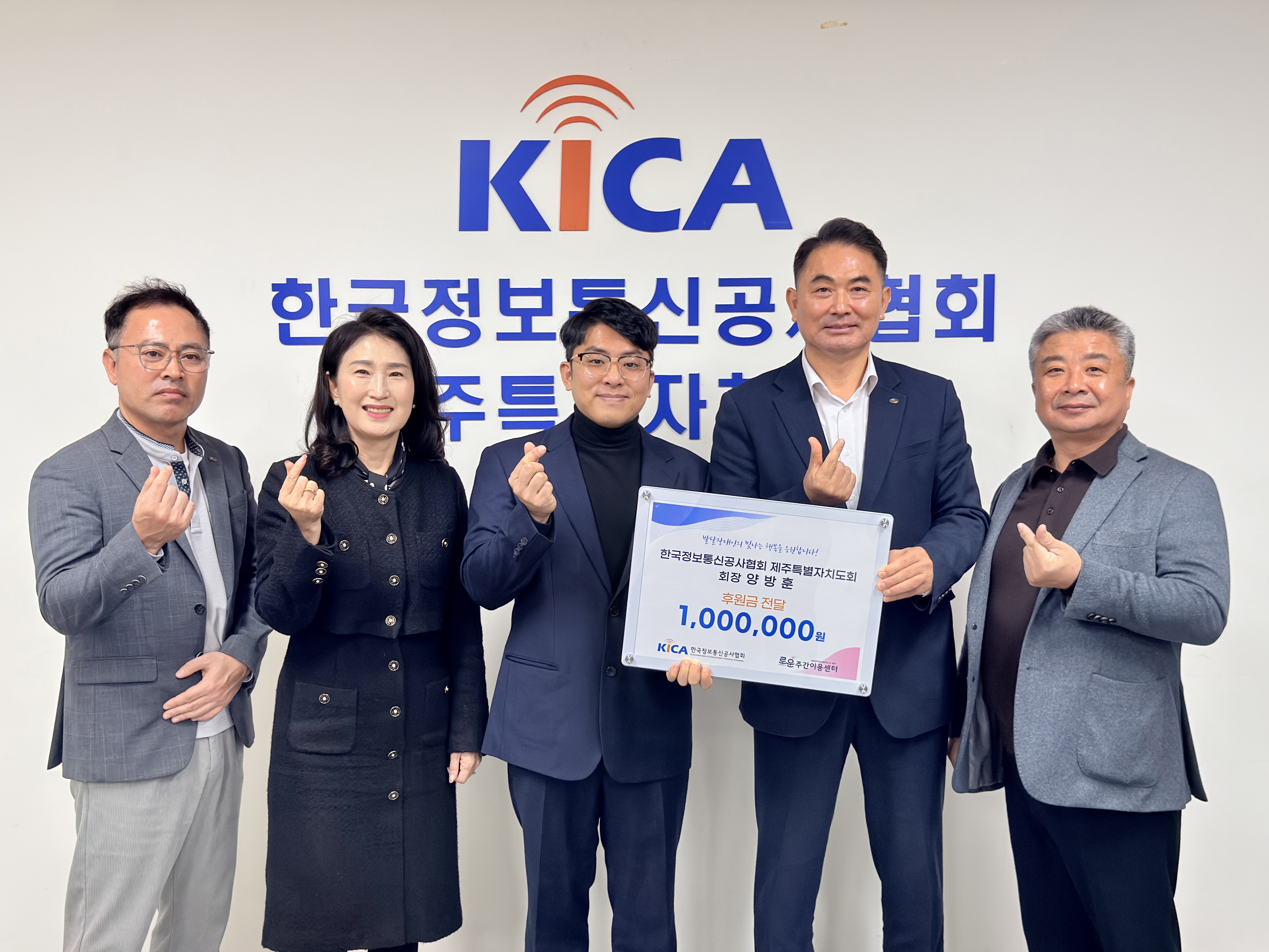 한국정보통신공사 제주협회(회장 양방훈)는 11월 25일(월) 협회 사무실에서 로운주간이용센터를 대상으로 한 후원금 1,000,000원 전달식을 진행했다. 이번 후원은 지역의 장애인 복지 향상과 사회적 관심 확대를 목적으로 마련된 것으로, 협회 측의 꾸준한 사회공헌 의지를 다시 한 번 확인하는 계기가 됐다.