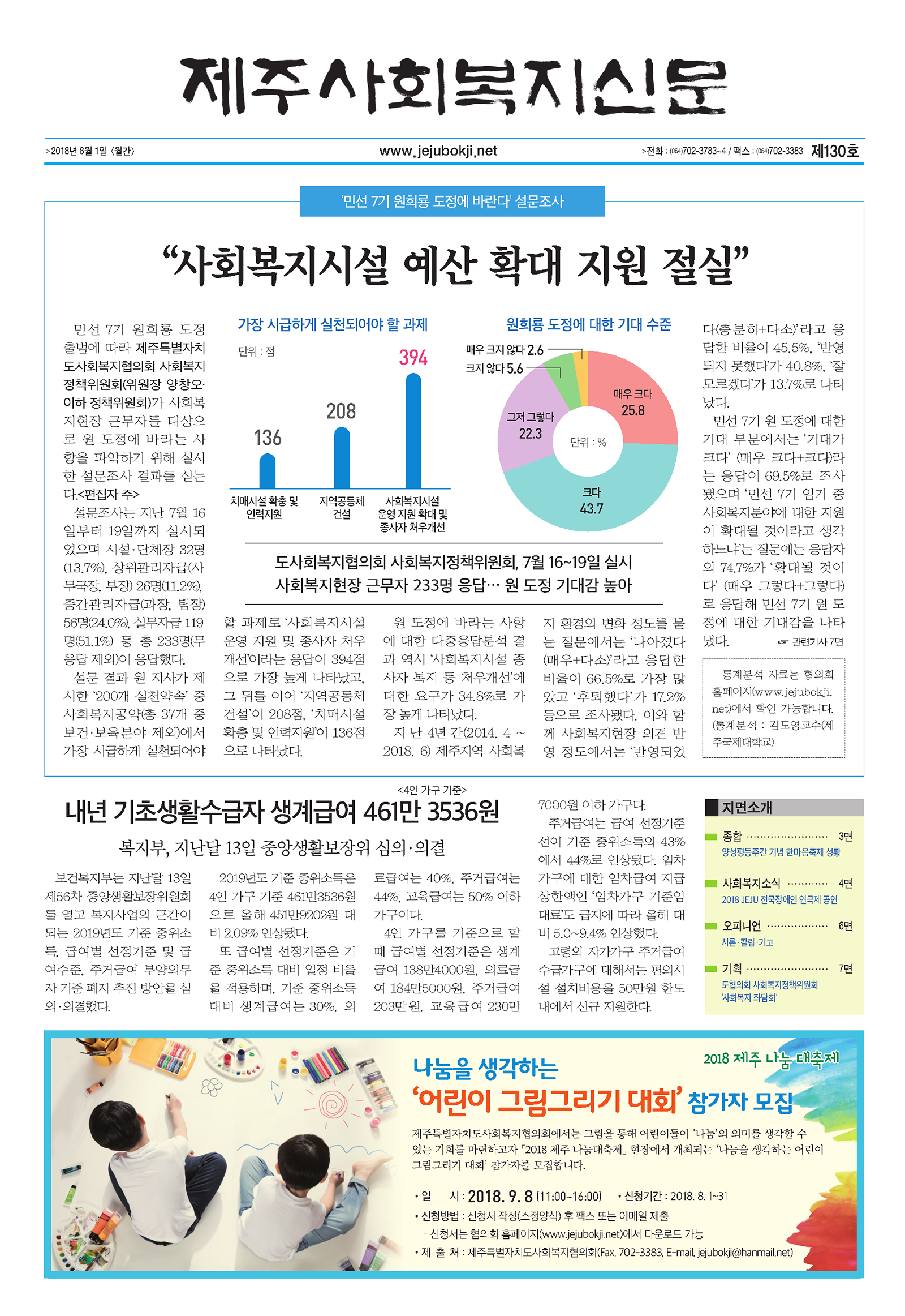 | 제주사회복지신문 제130호(2018.8.1) 지면소개 | |