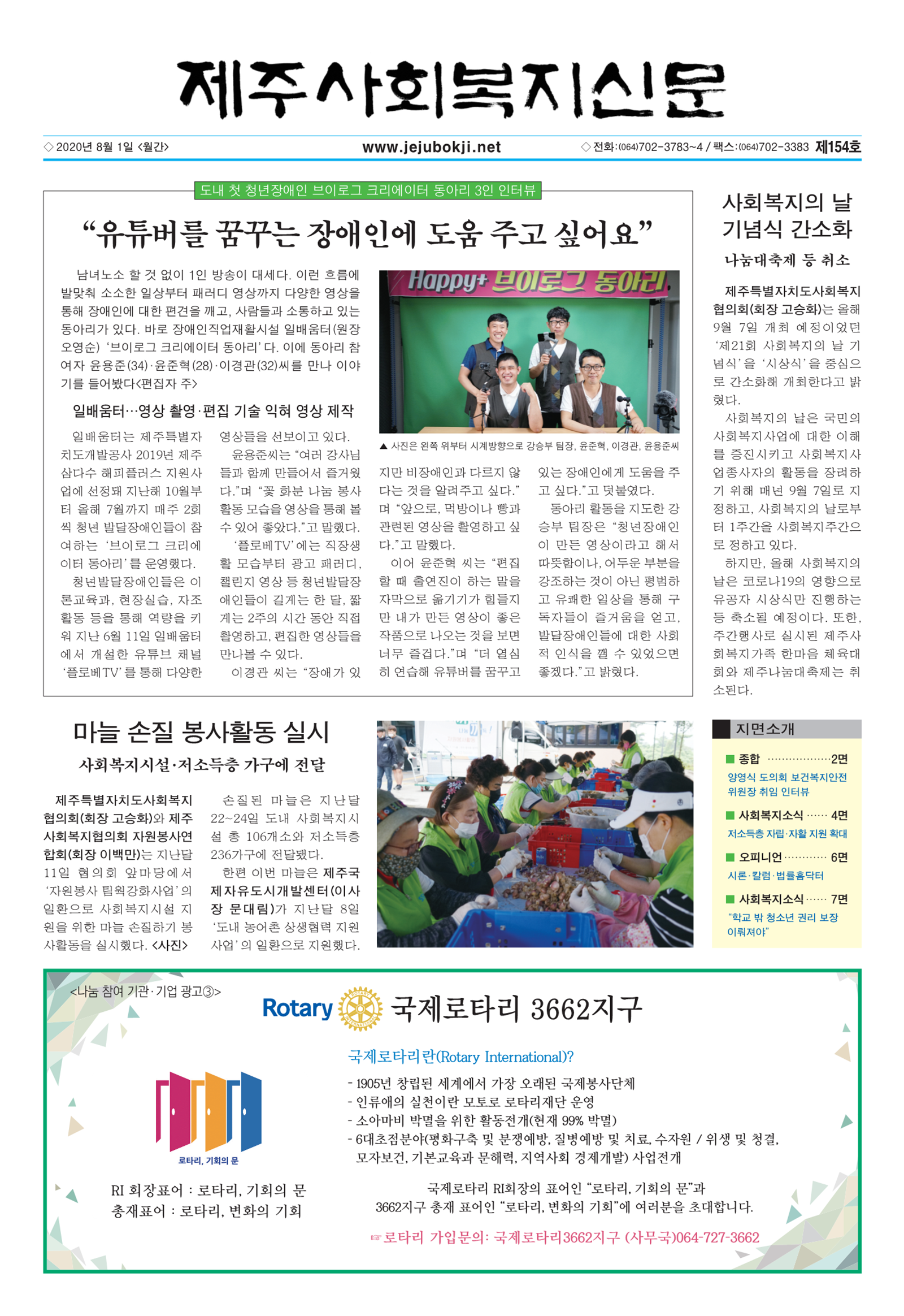 | 제주사회복지신문 제154호 (2020.8.1)지면소개 |