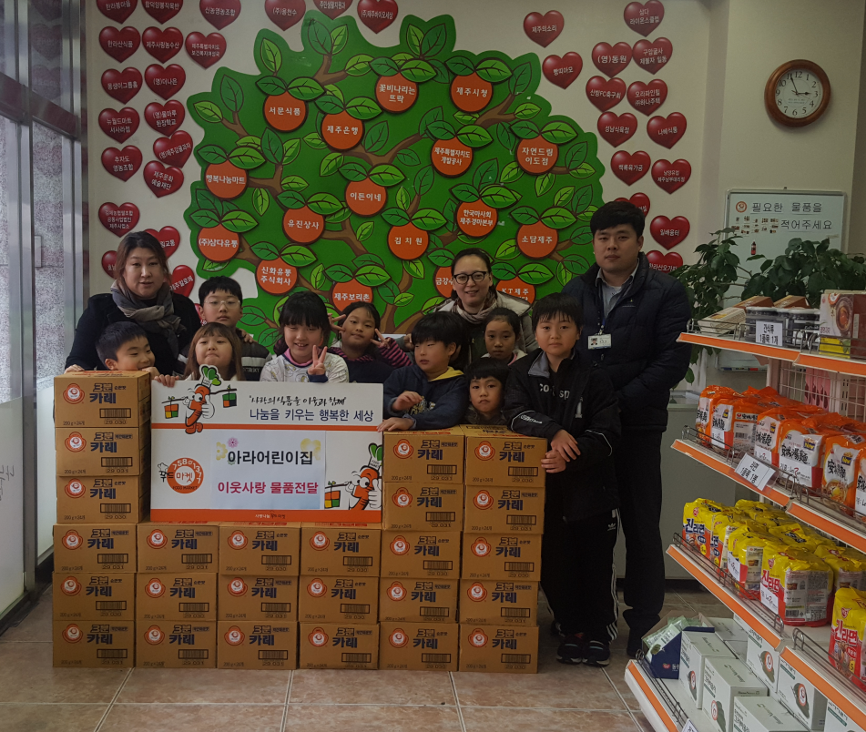 ▲금강수산유통=수산물45봉 ▲금강축산유통=축산물207kg ▲김치원=김치30kg ▲꽃비나리는뜨락=떡234개 ▲농업회사법인 서문식품=두부612모 ▲던킨도너츠 제주외도점=도너츠106개 ▲동원F&B제주지점=동원식품3,832개 ▲모앙=제과류74봉 ▲빠라빠빵=식빵등223봉 ▲손뜻모아봉사회=가래떡80kg ▲신화유통주식회사=고추장등447개 ▲아라어린이집=3분카레600개 ▲얌얌영농조합법인=빵36봉 ▲에스에이치유통=견과류등290봉 ▲유진상사=오뚜기식품2,130개 ▲이든이네=건멸치9kg ▲자연드림 이도점=빵151봉 ▲제주보리촌=보리빵480개 ▲(주)푸른제주=제과류등554kg ▲캣어클락=식빵34봉 ▲파리바게트 동광초점=빵104봉 ▲행복나눔마트 노형점=주방세제80kg ▲행복나눔마트 오라점=빵245봉