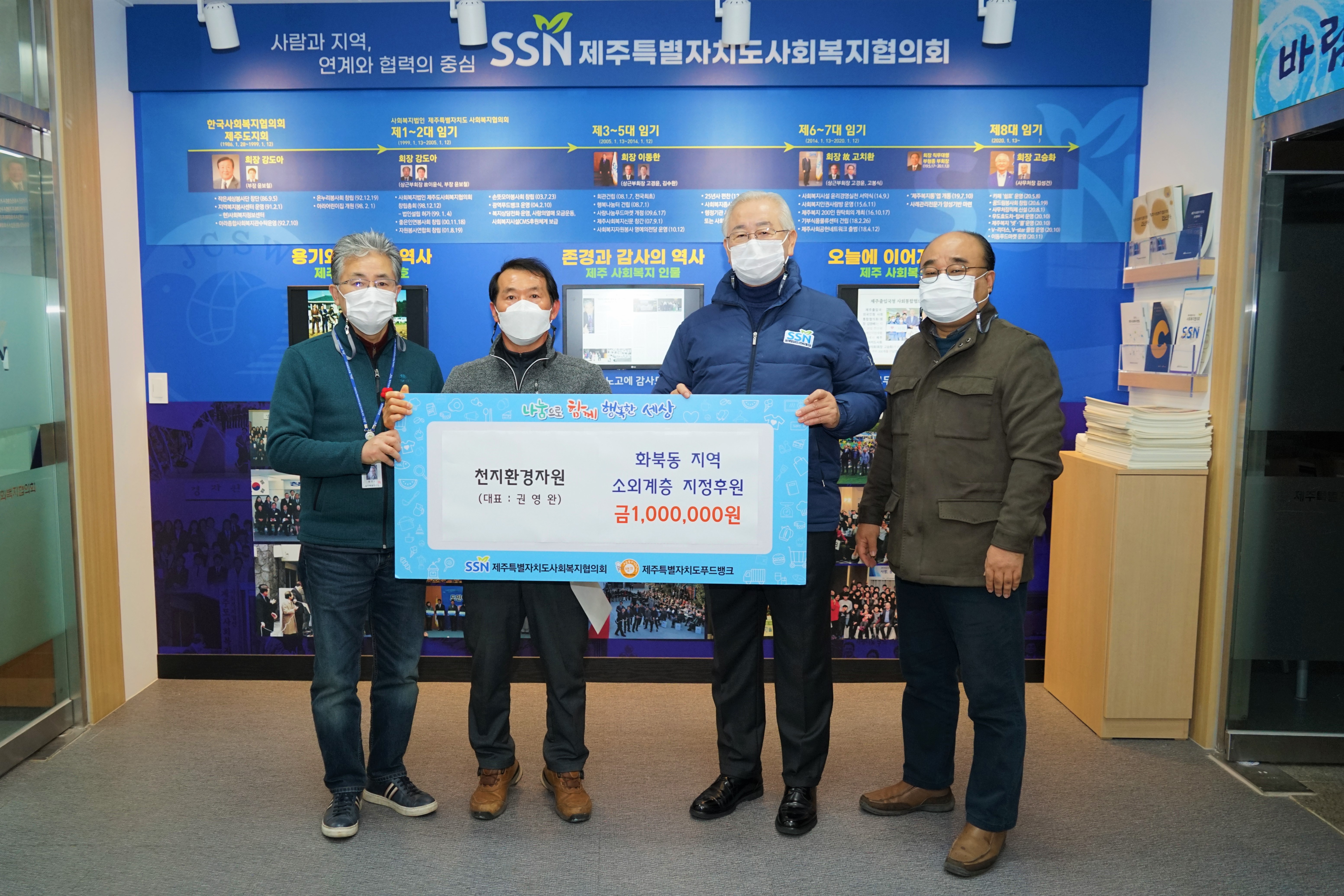 화북동 지역 소외계층 지원을 위한 지정후원금(금1,000,000원)을 전달해 주셨습니다.