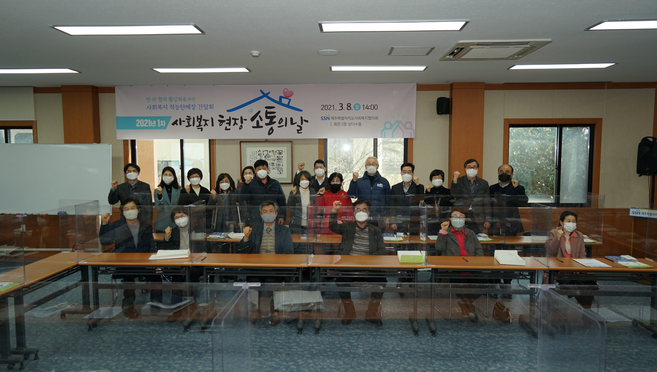 어제(8일) 협의회 삼다수홀에서 사회복지 직능단체 대표자와 제주도 보건복지여성국 임태봉 국장님을 비롯한 관계 공무원 5명이 참석한 가운데 ‘민·관 협력과 소통 활성화를 위한 사회복지 현장 소통의 날’ 간담회가 개최되었습니다.