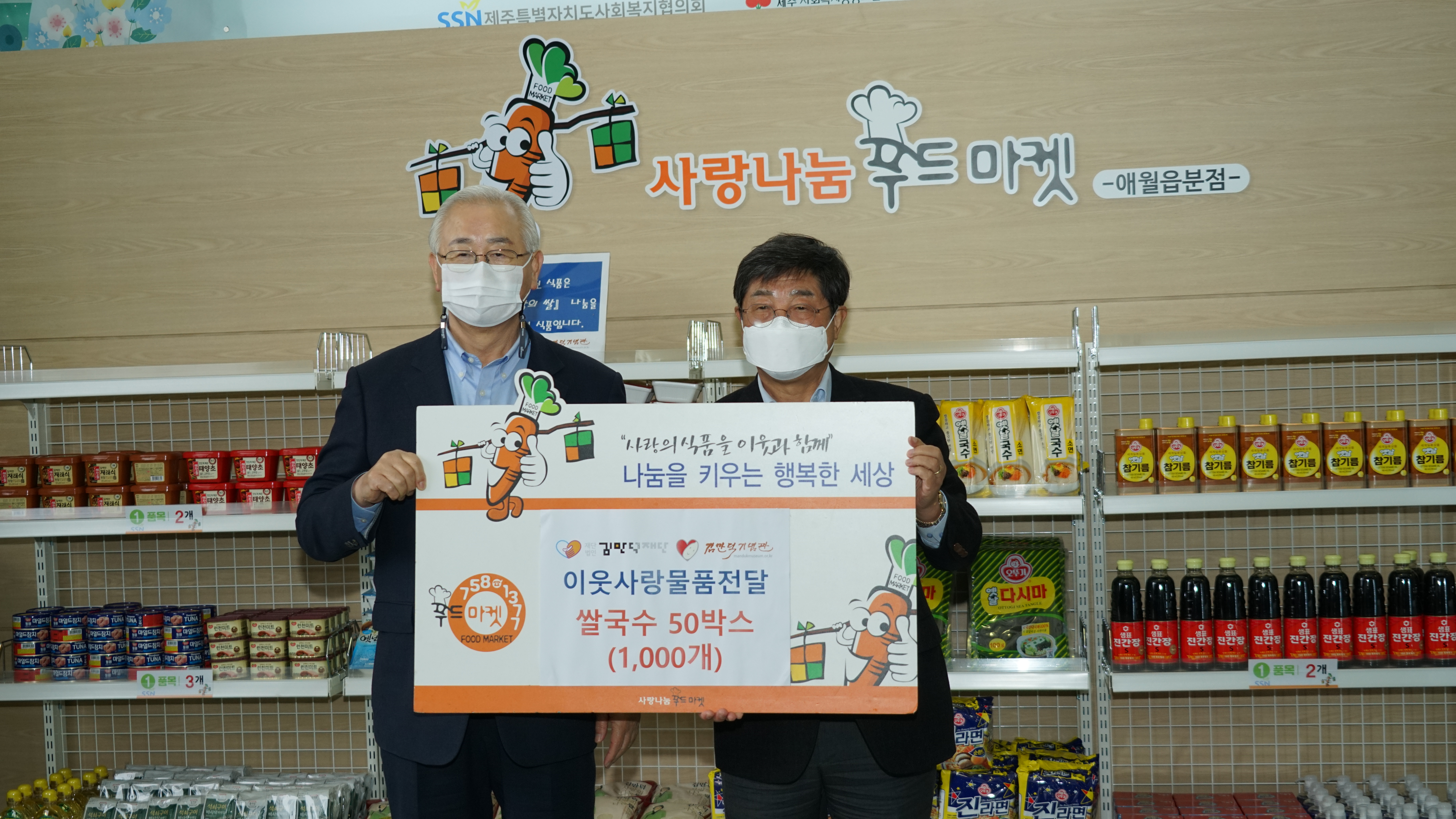이날 김만덕기념관(관장 김상훈)에서는 이웃사랑식품(쌀국수 1,000개)을 기부해 애월분점의 출발에 따뜻한 힘을 더해 주셨습니다.