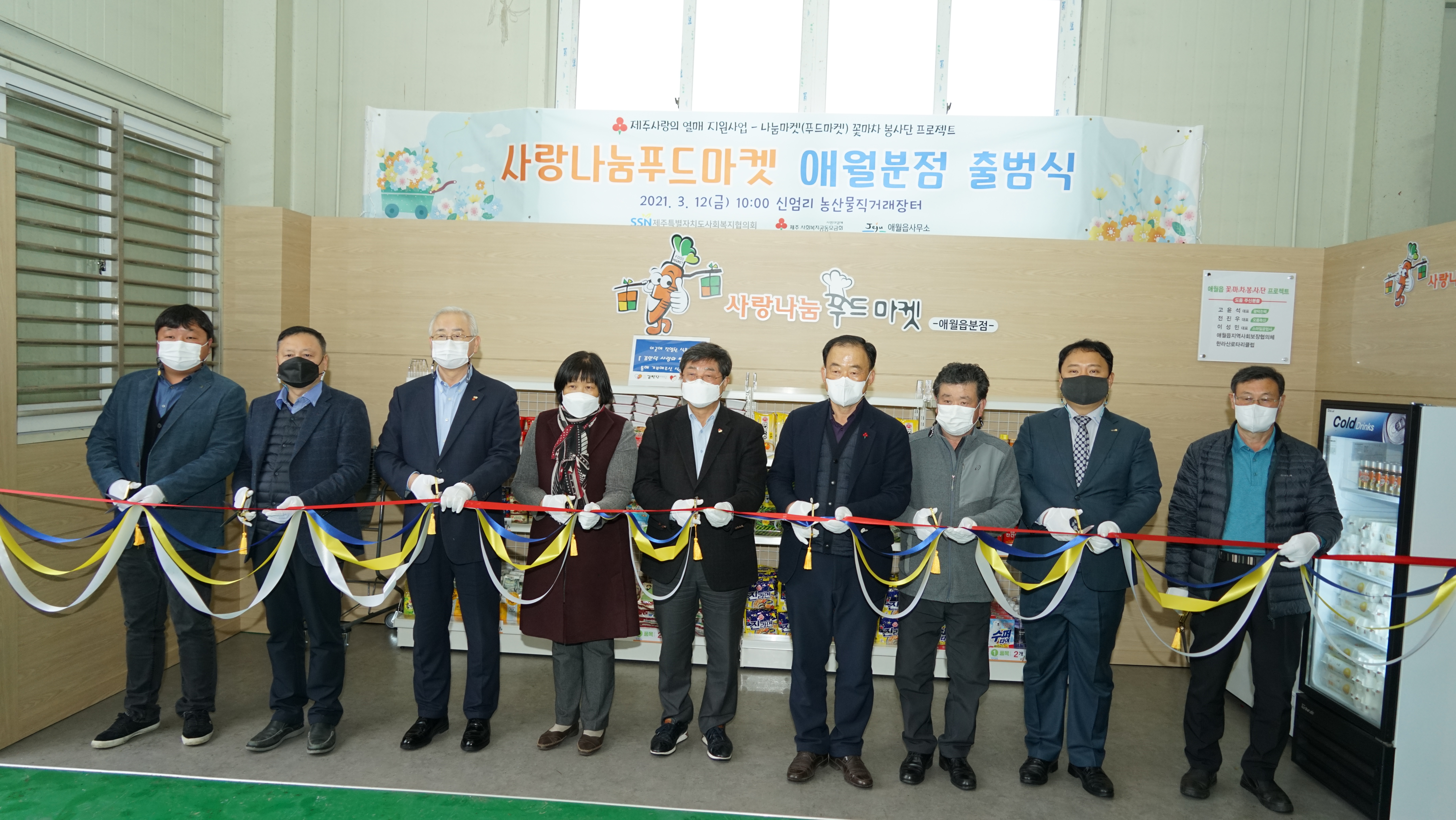 우리 협의회는 지난 12일 신엄리 농산물직거래장터에서 애월읍 꽃마차 봉사단 프로젝트 ‘사랑나눔 푸드마켓 애월분점’ 출범식을 갖고 본격적인 운영에 들어 갔습니다.