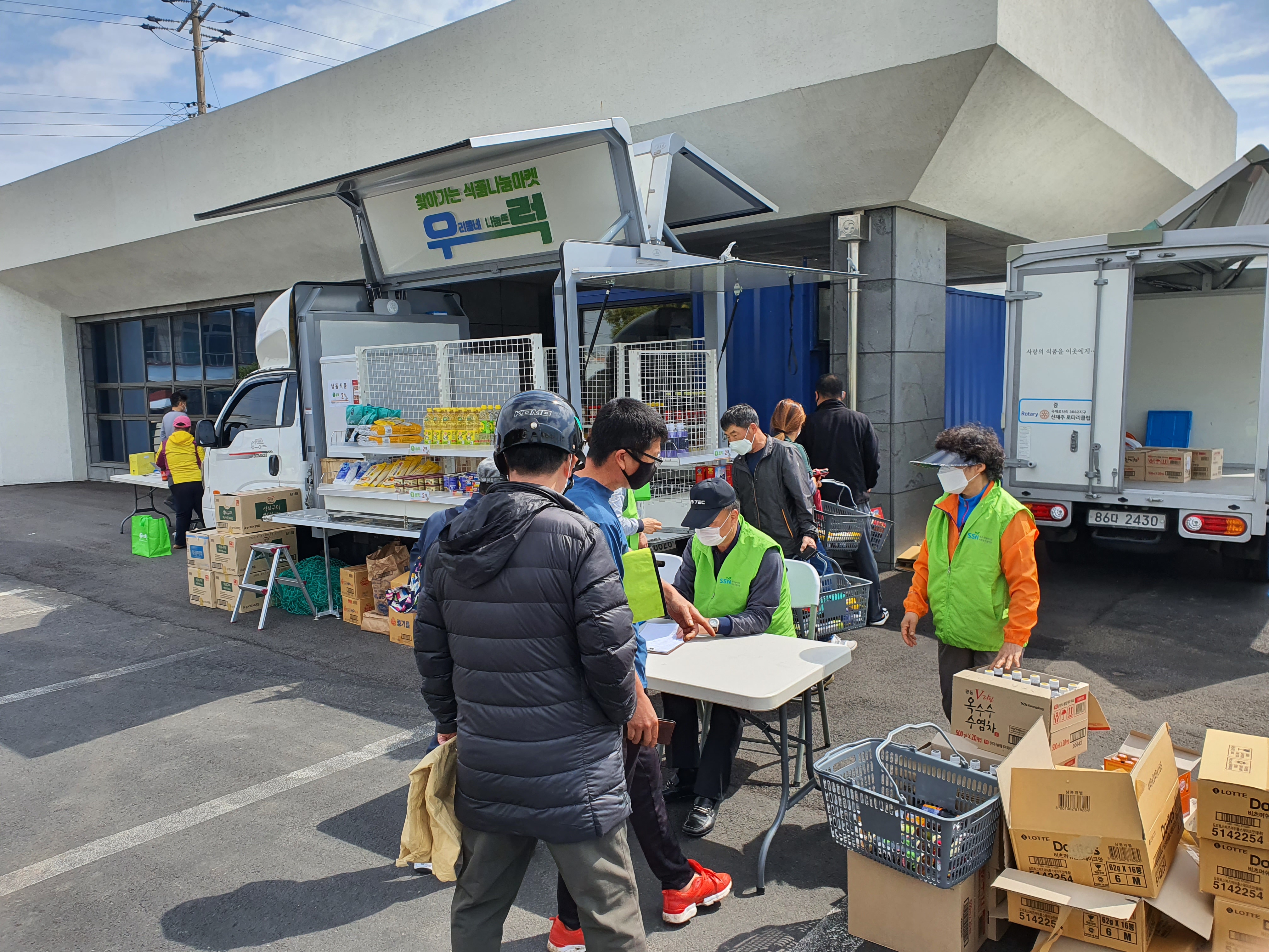 직접 찾아가 이동형 편의점(1t트럭 개조)을 통해 기부 식품을 제공하고 있습니다.