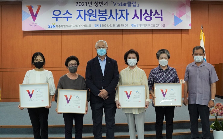 지난 28일(월) 자원봉사자 명예감 고취 및 사기를 진작시키고자 상반기 V-star클럽 우수 자원봉사자 시상식을 가졌습니다.