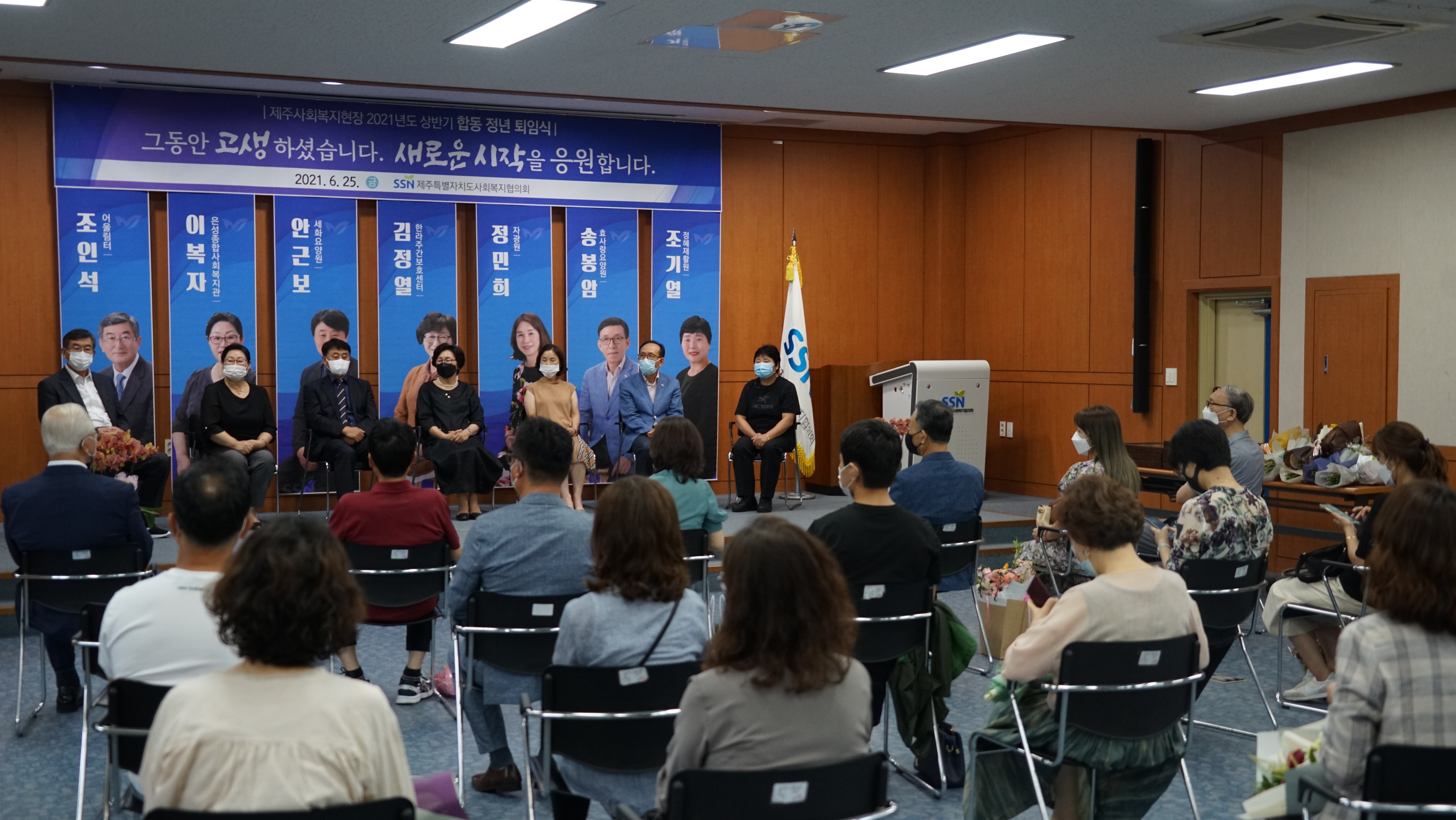 우리 협의회에서는 6. 25(금), 회관 삼다수홀에서 '제주사회복지현장 2021년도 상반기 합동 정년퇴임식'을 개최했습니다.