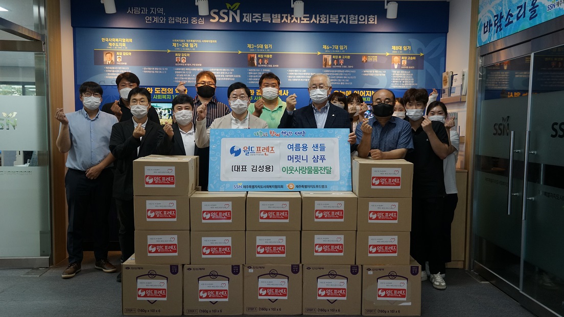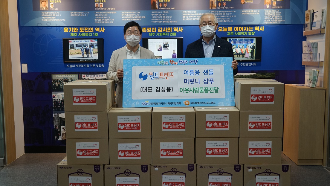 제주특별자치도푸드뱅크를 방문하여 1,020만원 상당의 여름용 샌들과 머닛니 샴푸를 전달해 주셨습니다.