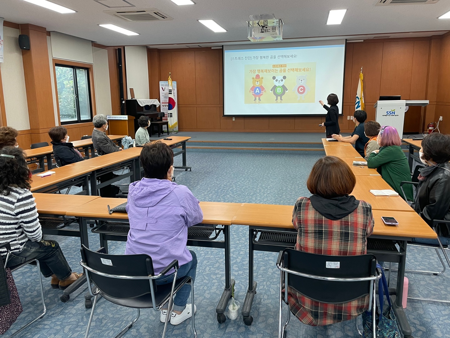 이날 교육은 자원봉사자들이 봉사활동 현장에서 감정노동을 하면서 겪는 어려움을 극복하기 위한 자아 존중감 향상기법과 감정관리방법에 대한 내용으로 진행됐습니다.