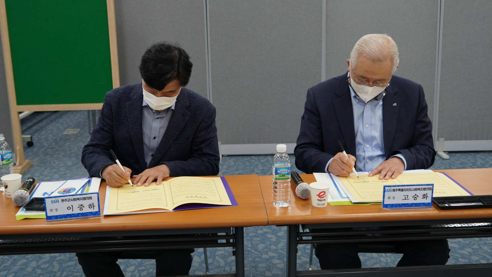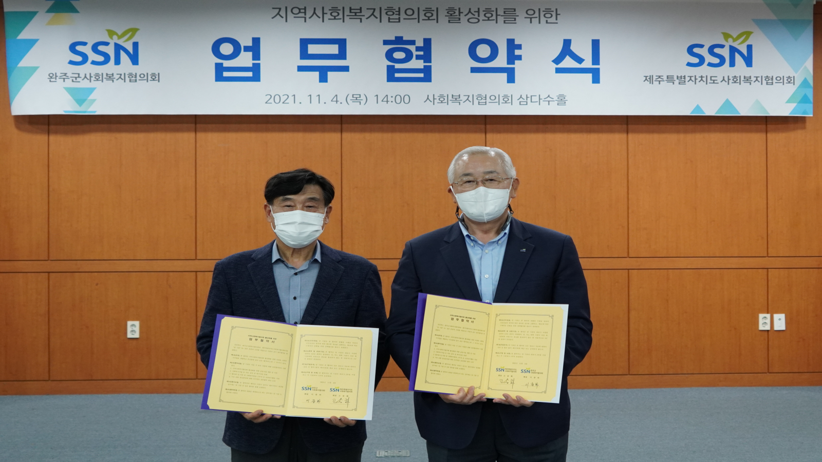 우리 협의회에서는 지닌 11월 4일 14:00, 삼다수홀에서 완주군사회복지협의회와 지역사회복지협의회 활성화를 위한 업무협약을 체결하였습니다.