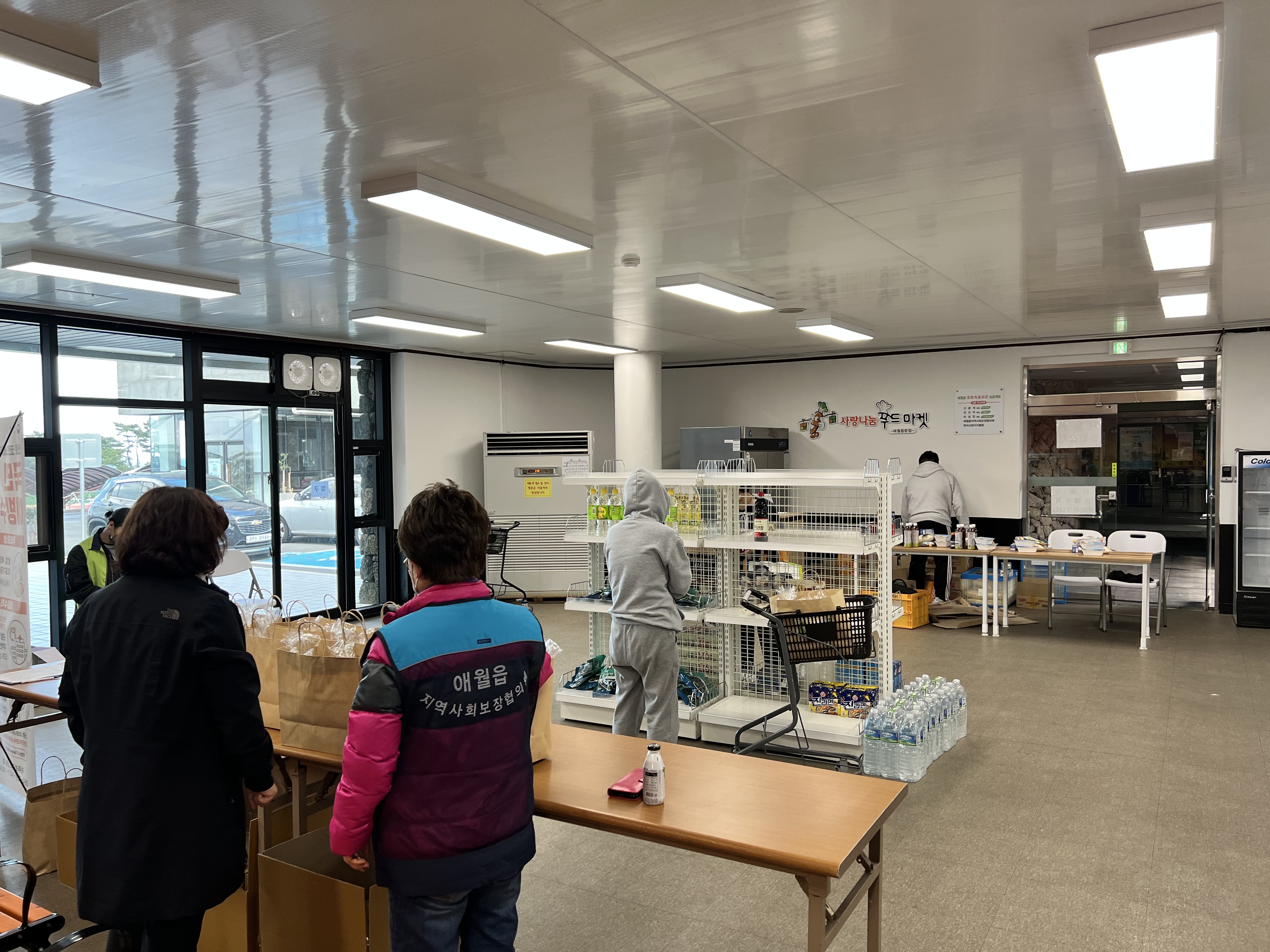 지난 금요일(11. 12) 제주시 애월읍 애월체육관에서 오전 10시부터 오후 2시까지 사랑나눔푸드마켓 애월분점을 운영하여, 39명의 이용자에게 기부식품과 물품을 제공하였습니다.