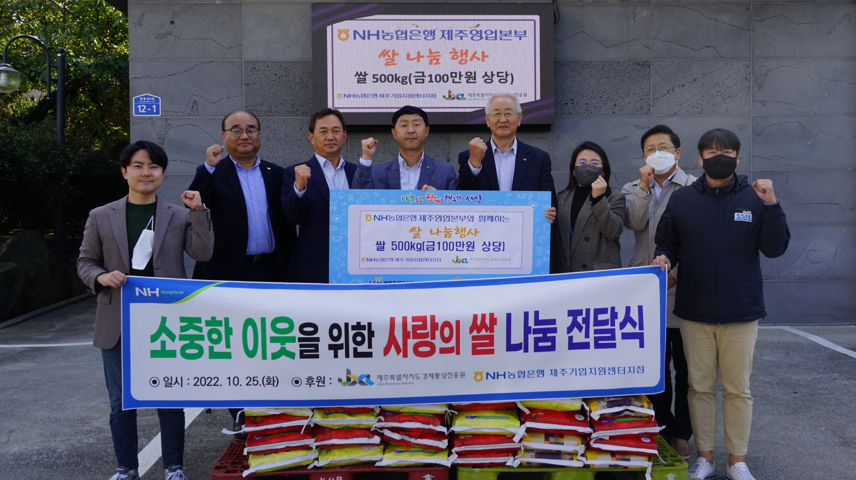 지난 화요일(10. 25) 오후, 제주경제통상진흥원(원장 오재윤)과 NH농협은행 제주기업지원센터지점(지점장 이상기)에서 우리 협의회를 방문해 10kg 쌀 50포를 기부해주셨습니다👍