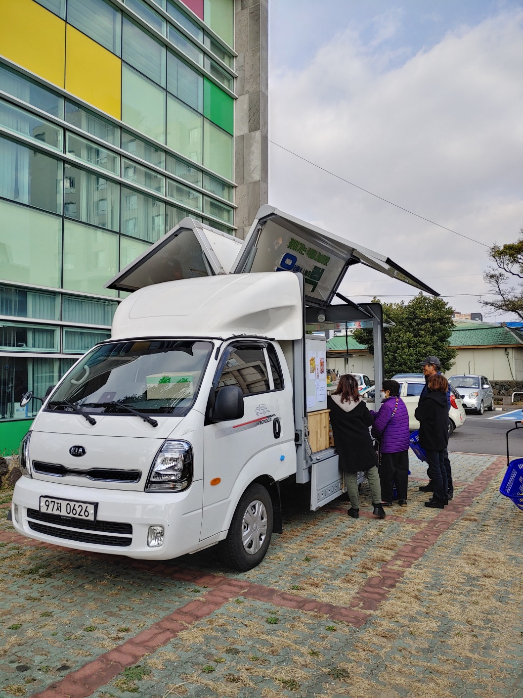 직접 찾아가 이동형 편의점 형태의 차량(1t트럭 개조)을 통해 기부식품을 제공하고