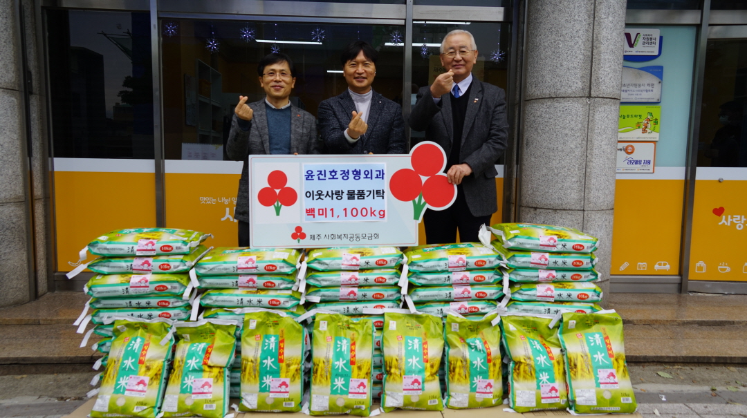 푸드마켓·뱅크 매장과 도로를 사이에 두고 이웃하고 있는 윤진호 정형외과의 윤진호 원장님께서 쌀 550kg을 전달해주셨습니다.