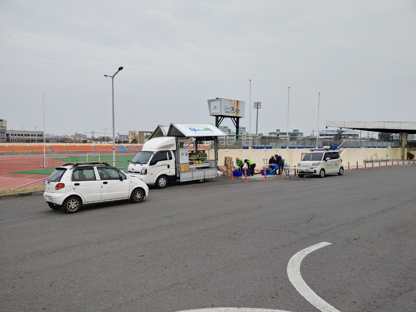 직접 찾아가 이동형 편의점 형태의 차량(1t트럭 개조)을 통해 기부식품을 제공하고