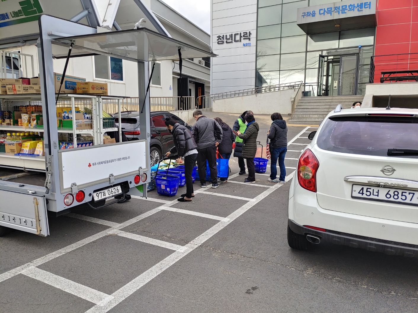 직접 찾아가 이동형 편의점 형태의 차량(1t트럭 개조)을 통해 기부식품을 제공하고