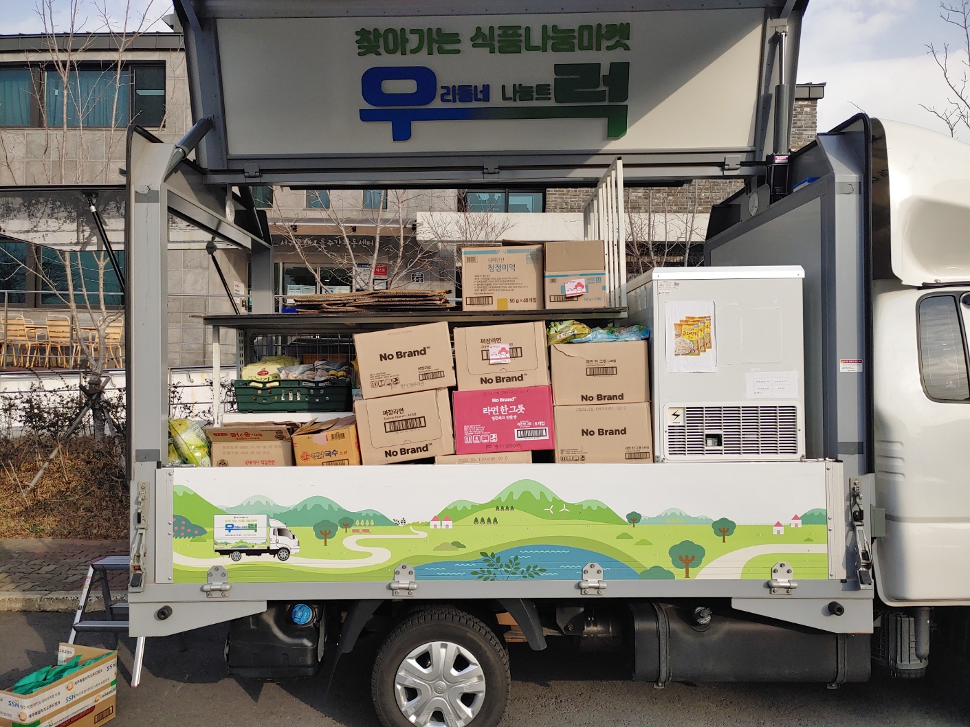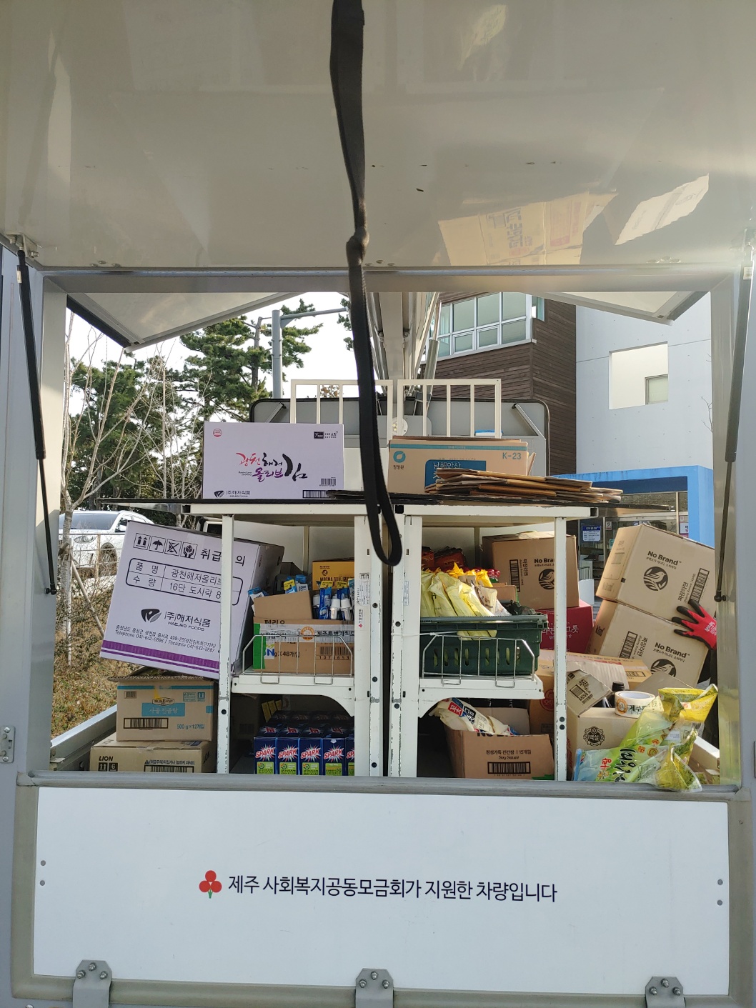 직접 찾아가 이동형 편의점 형태의 차량(1t트럭 개조)을 통해 기부식품을 제공하고