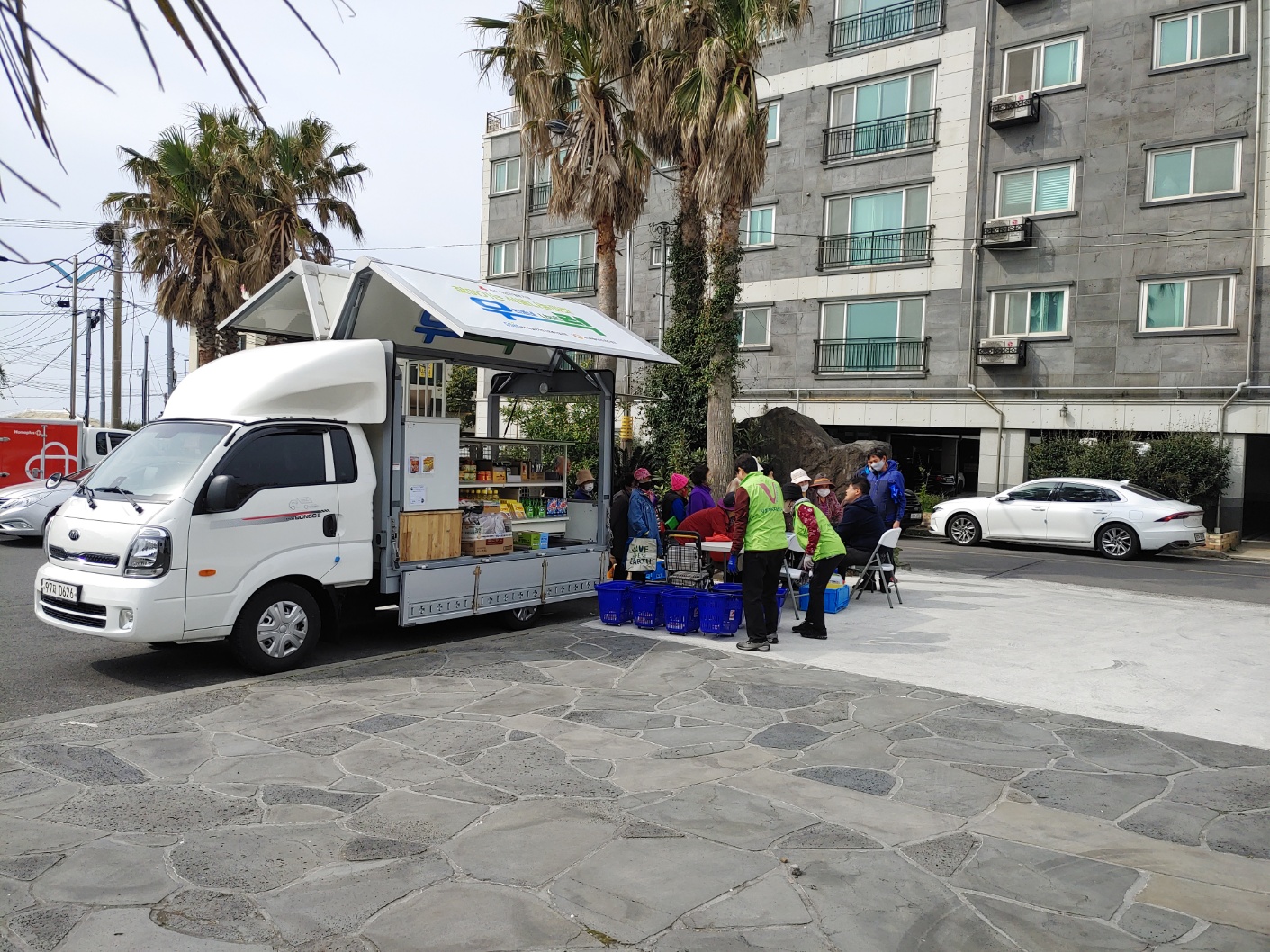 직접 찾아가 이동형 편의점 형태의 차량(1t트럭 개조)을 통해 기부식품을 제공하고