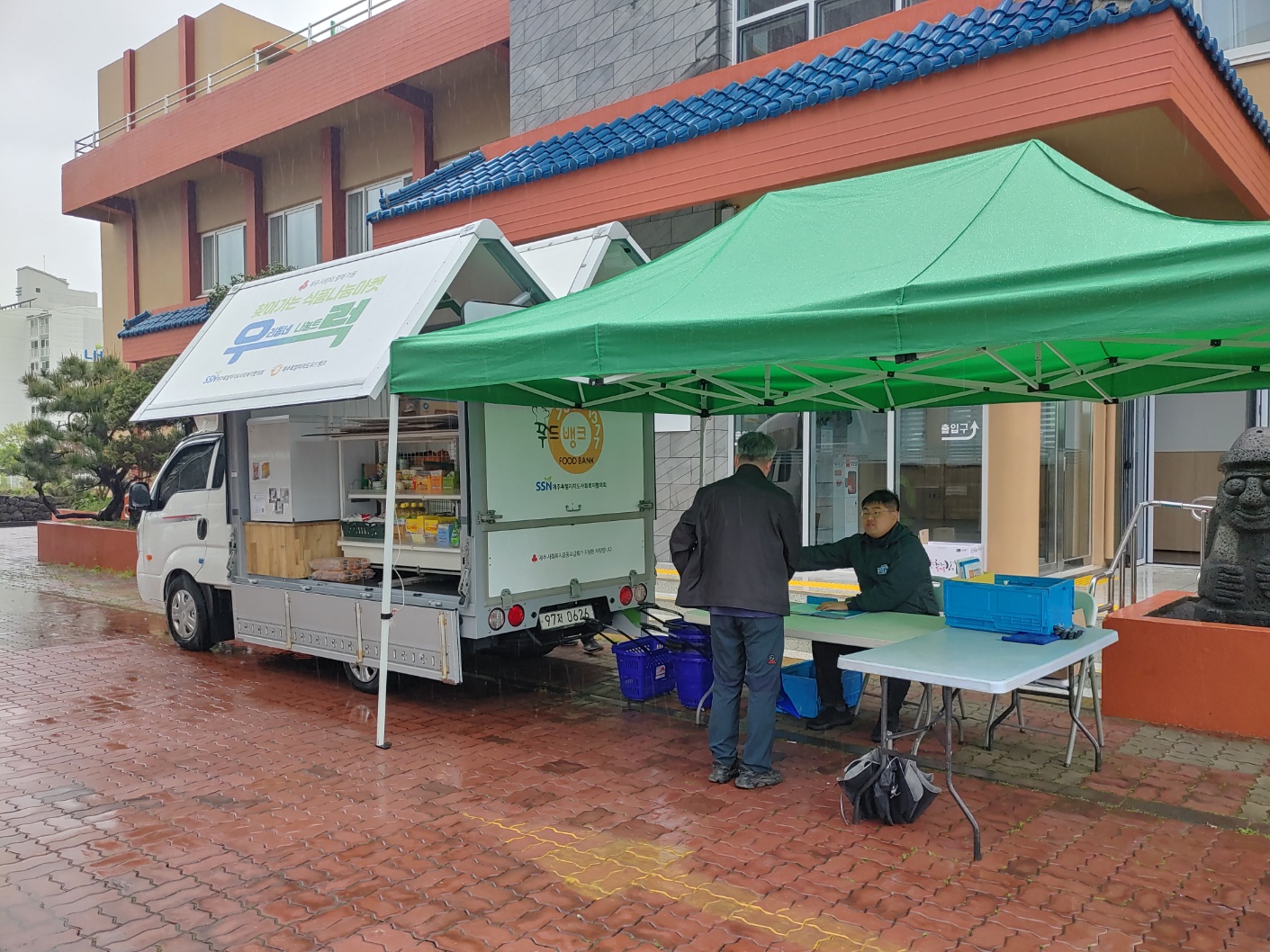 직접 찾아가 이동형 편의점 형태의 차량(1t트럭 개조)을 통해 기부식품을 제공하고